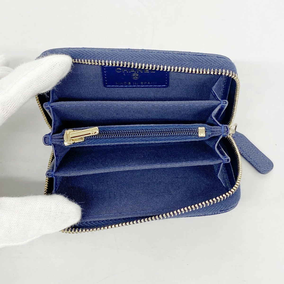 ★最終価格【5pb2550】シャネル コインケース マトラッセ キャビアスキン ネイビー シャンパンゴールド金具【中古】レディース