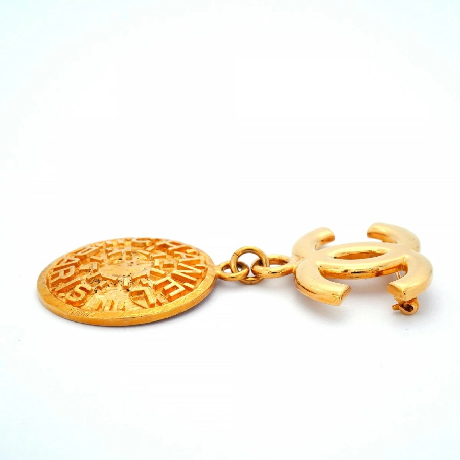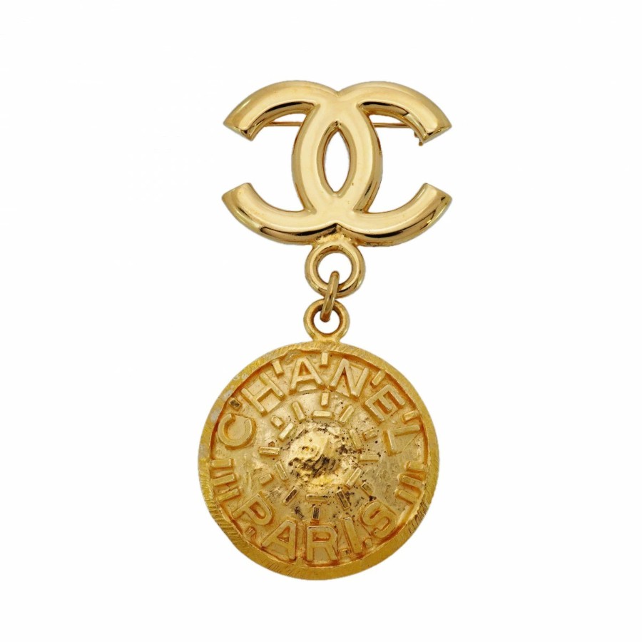 ★最終価格【6jcb0761-k】シャネル ブローチ ヴィンテージ ココマーク シャネルロゴ 丸型 サークル GPメッキ ゴールド【中古】レディース