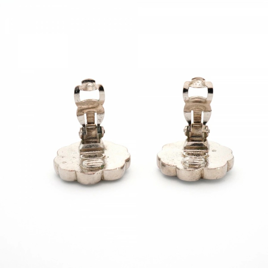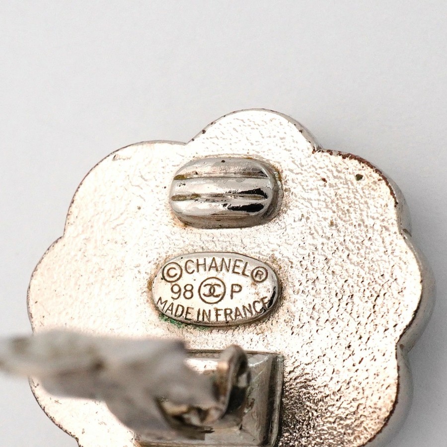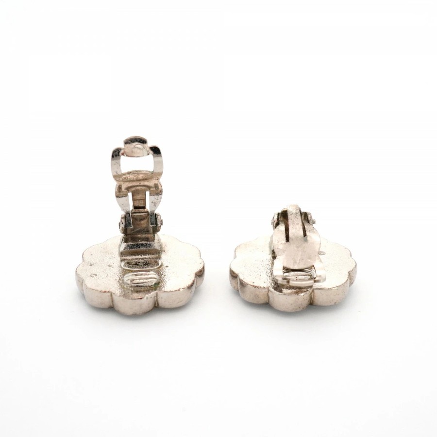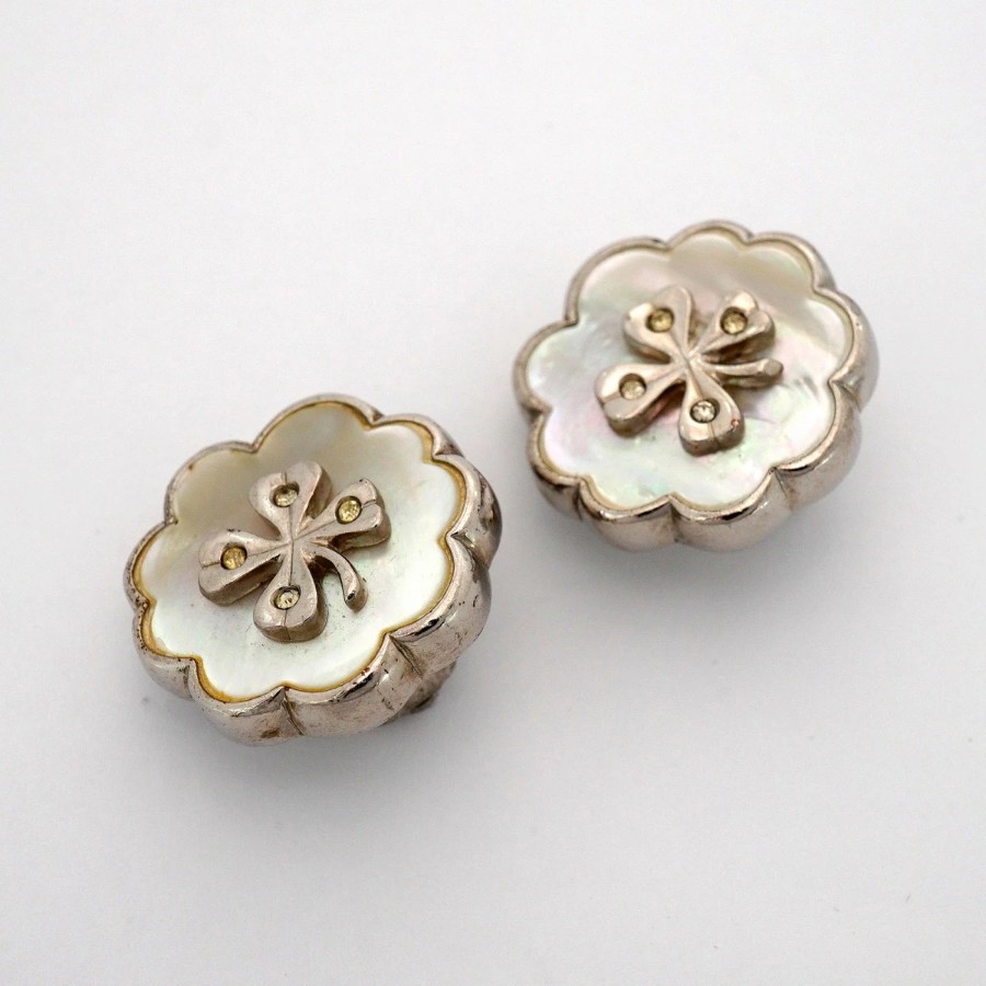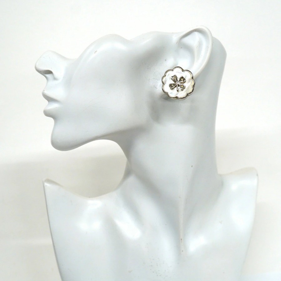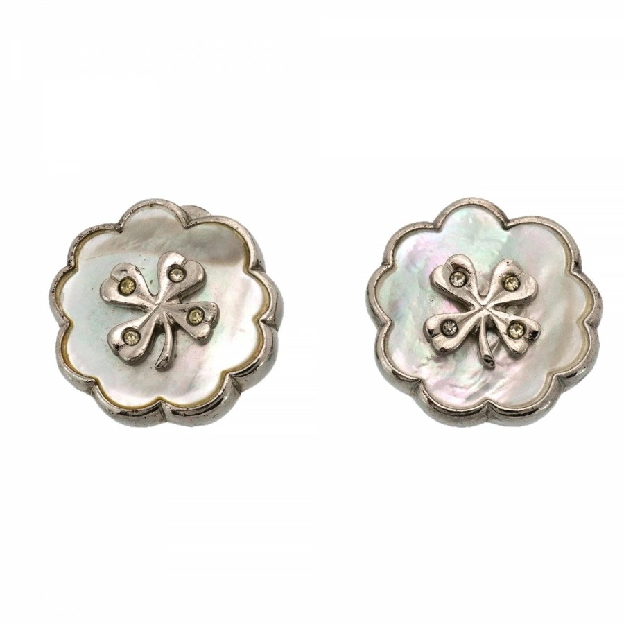 ★最終価格【6jcb0799】シャネル イヤリング ヴィンテージ クローバーモチーフ メタル ラインストーン シェル シルバー ホワイト【中古】レディース