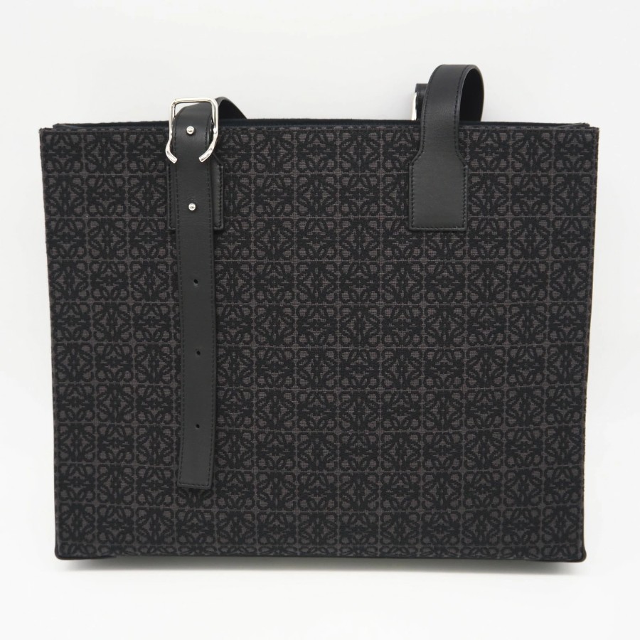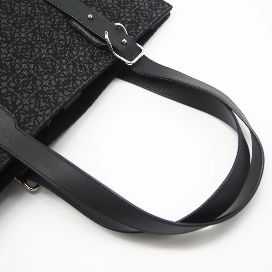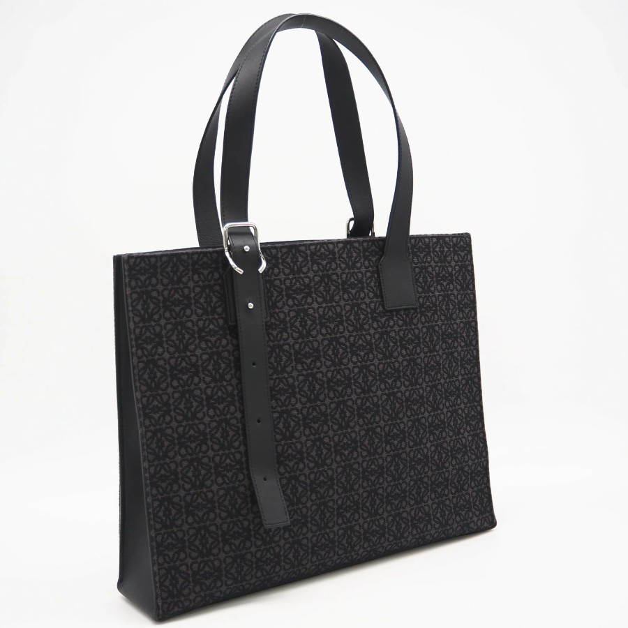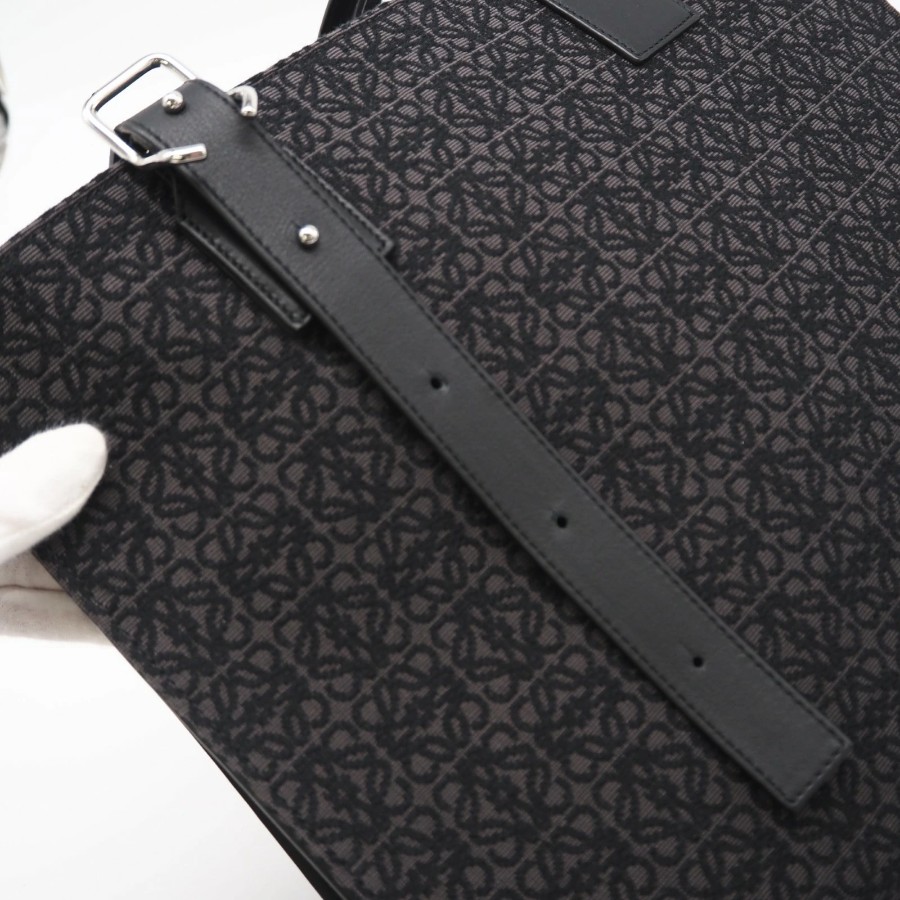 Excellent condition LOEWE Anagram Buckle Horizontal Tote B692K96X02 Tote bag Black Gray Canvas Calf Leather Men's [Used]