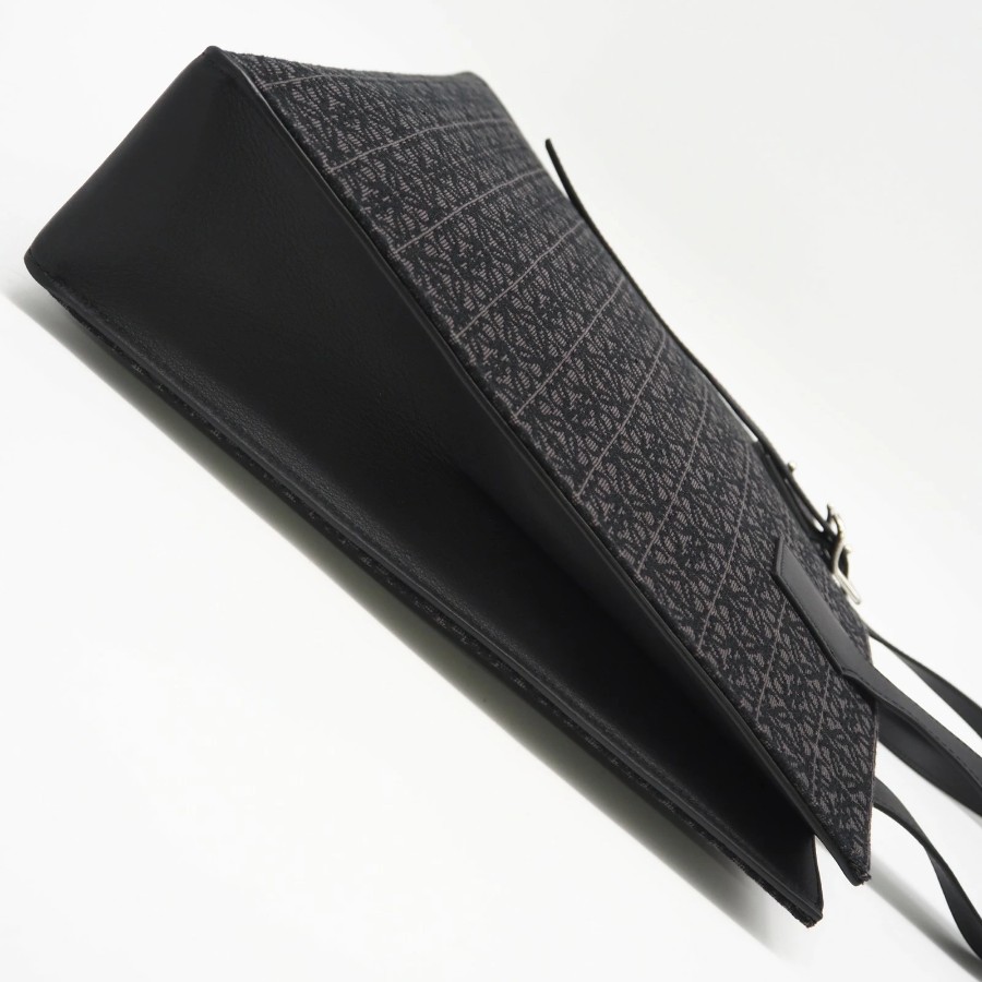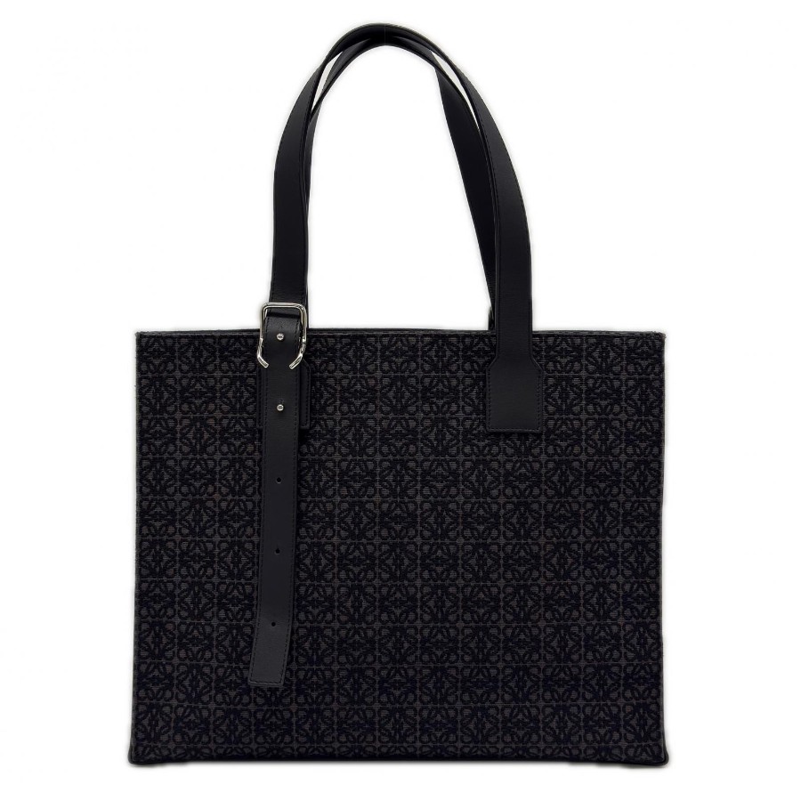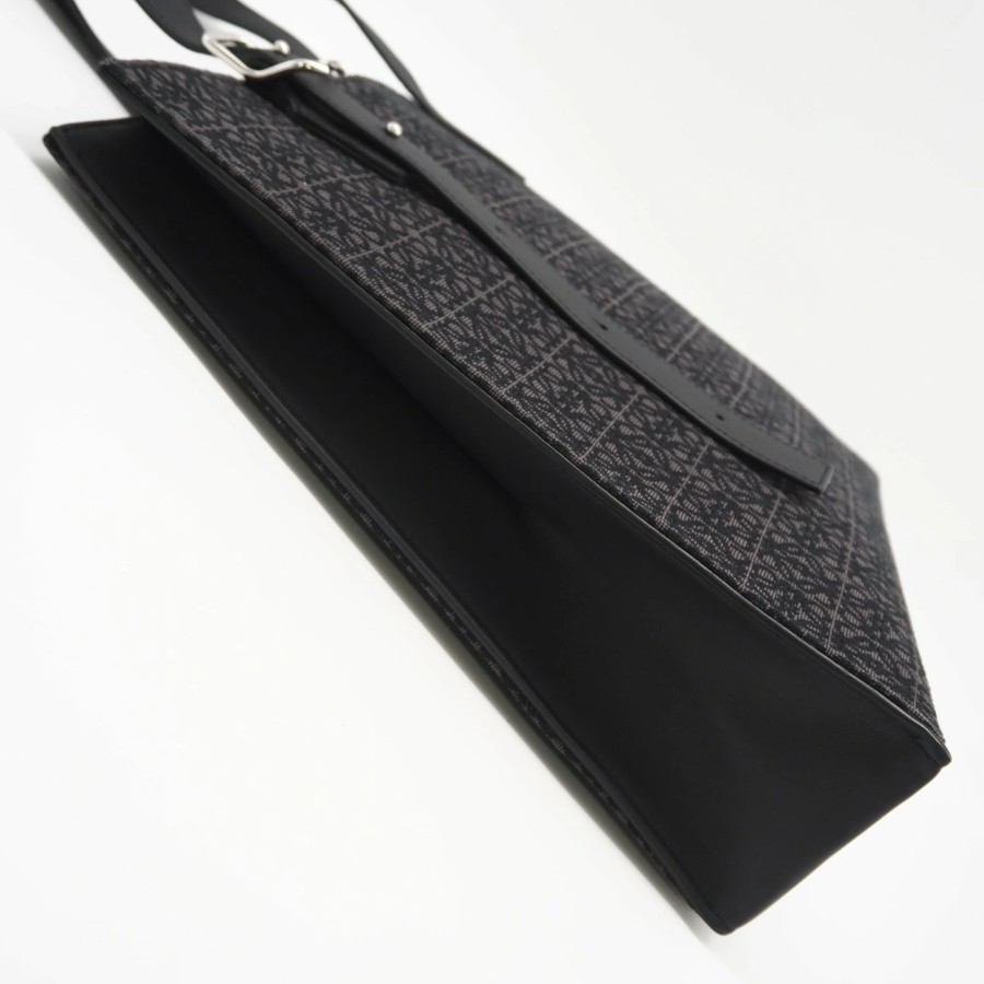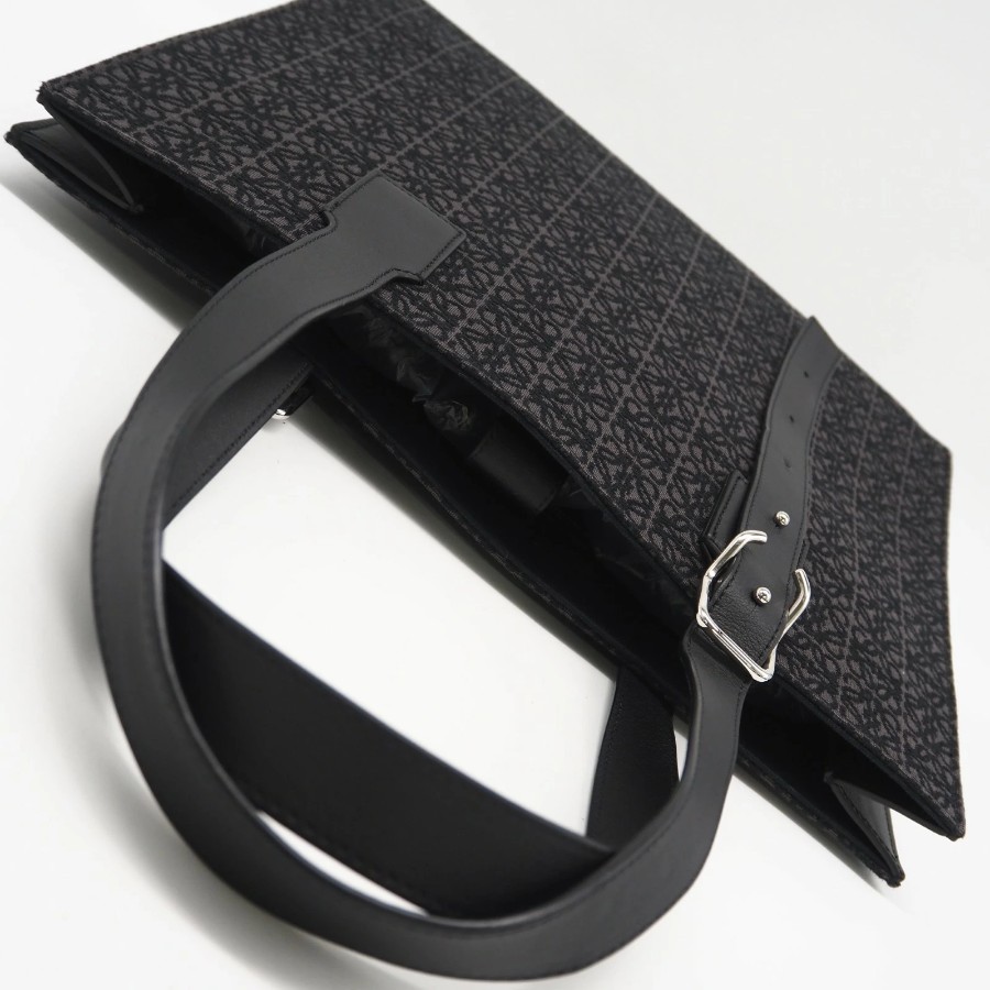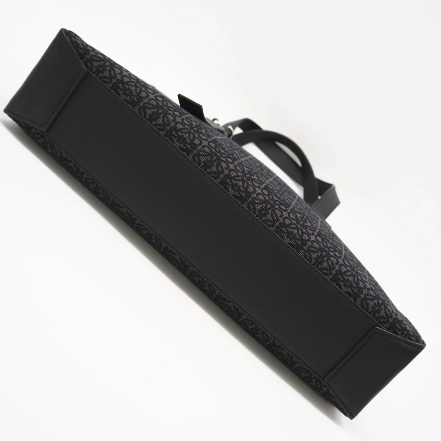 Excellent condition LOEWE Anagram Buckle Horizontal Tote B692K96X02 Tote bag Black Gray Canvas Calf Leather Men's [Used]
