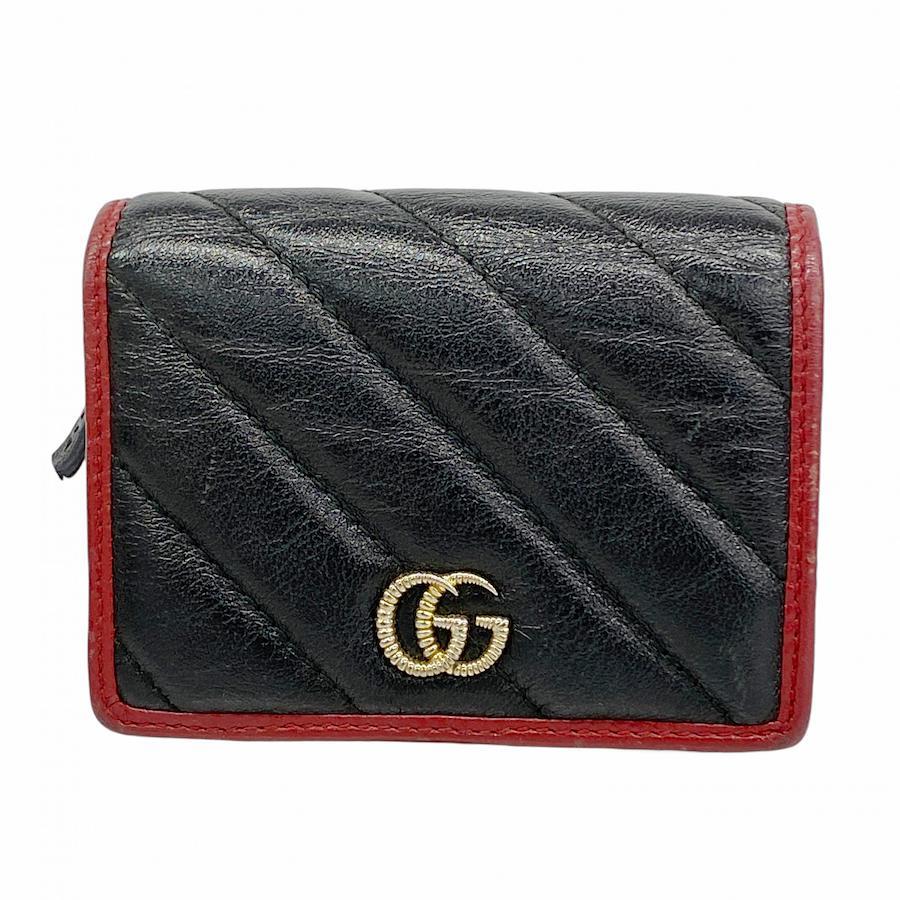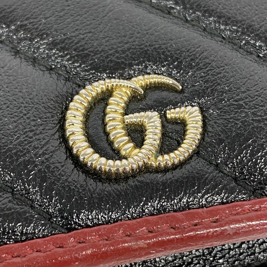 ★SALE【5ia0850-h】グッチ 財布 GGマーモント 573811 レザー ブラック レッド シャンパンゴールド金具【中古】レディース