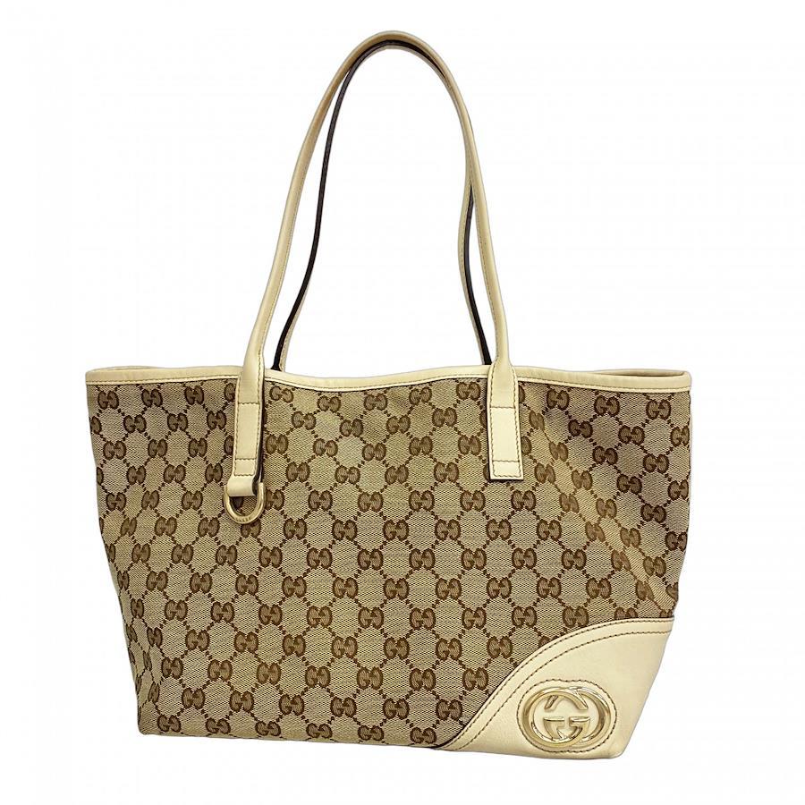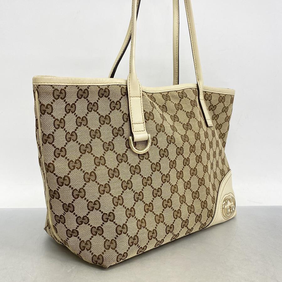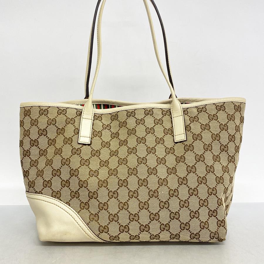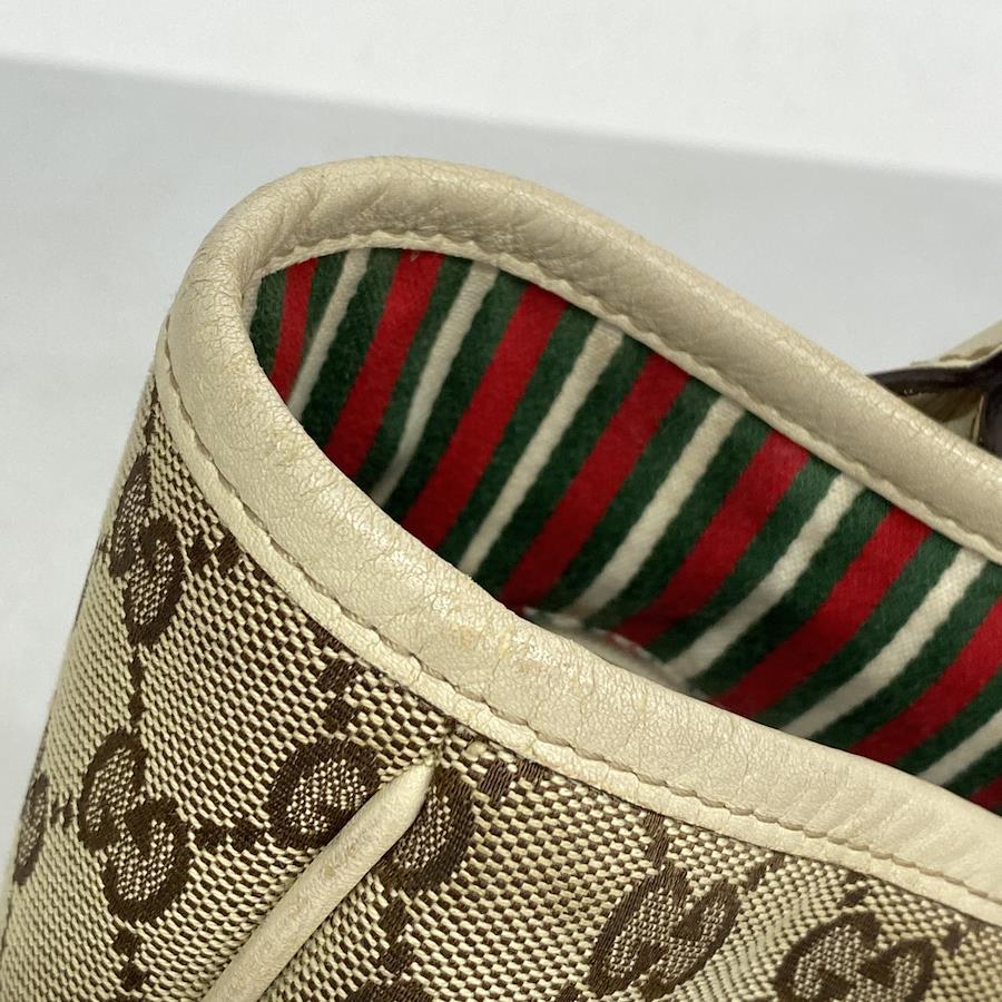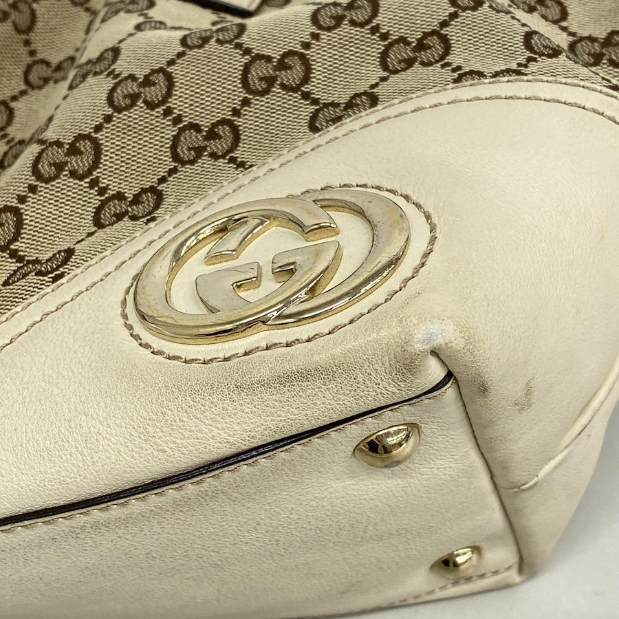 ★SALE【5ia1002-h】グッチ トートバッグ GGキャンバス 169946 キャンバス ベージュ ホワイト シャンパンゴールド金具【中古】レディース