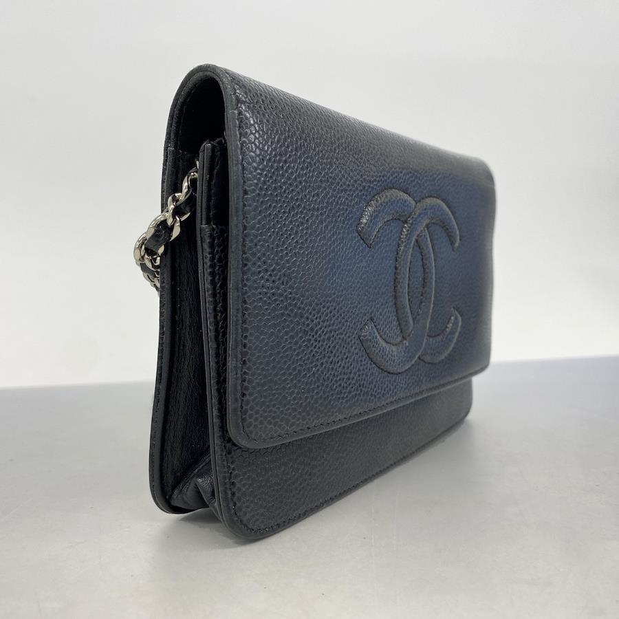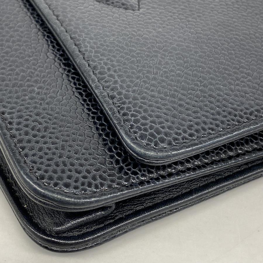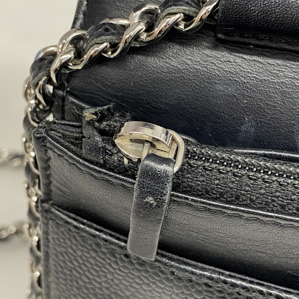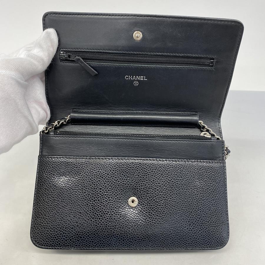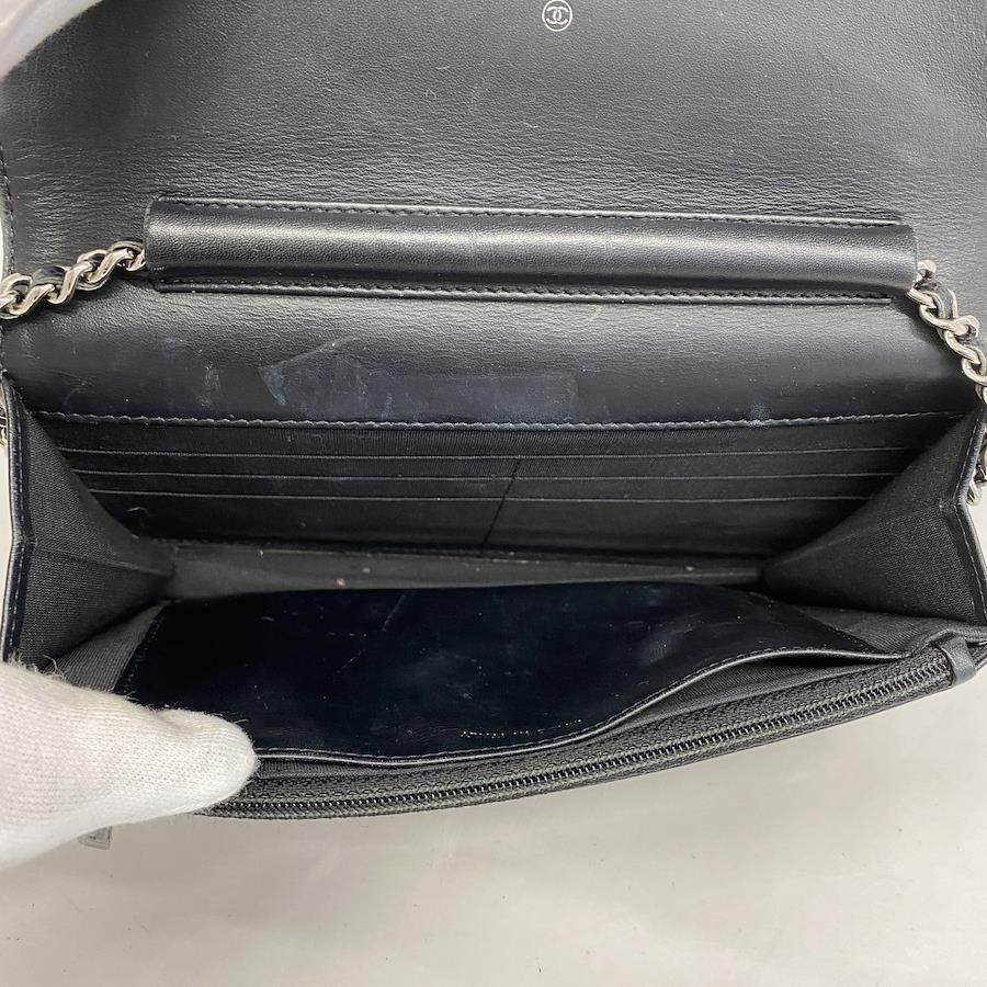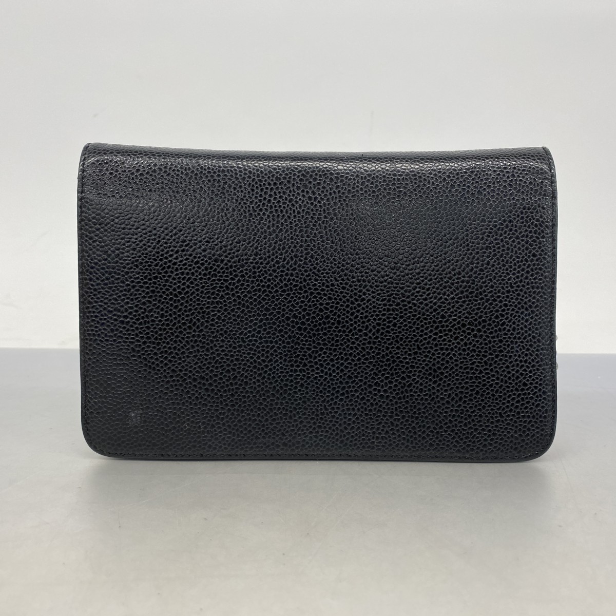 ★SALE【5ia1067-h】シャネル ショルダーウォレット キャビアスキン ブラック シルバー金具【中古】レディース