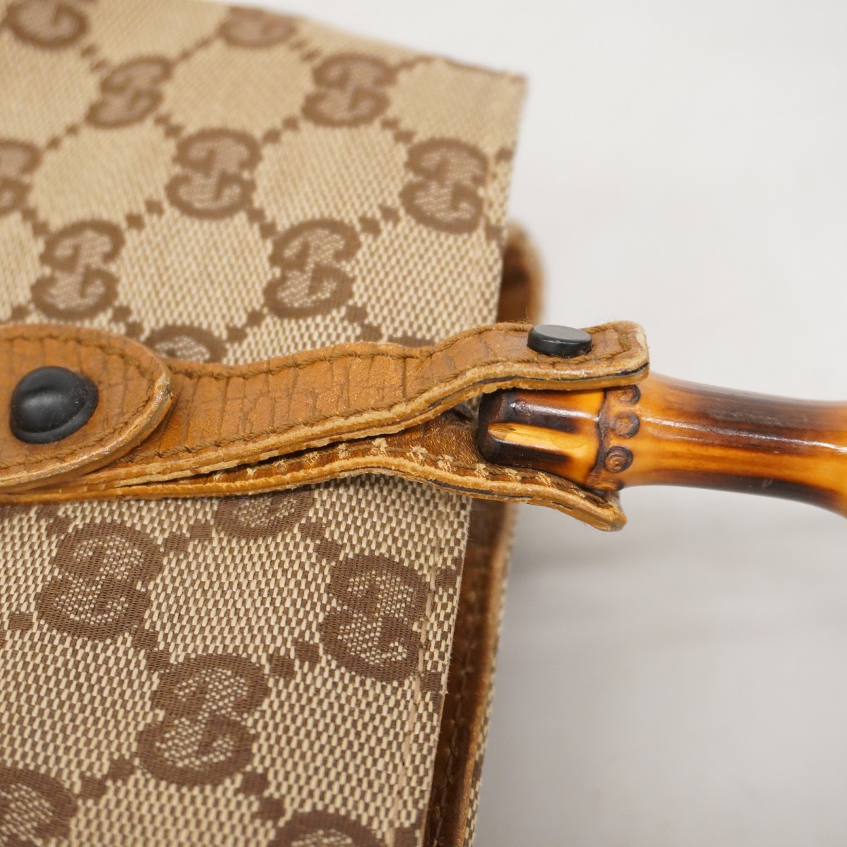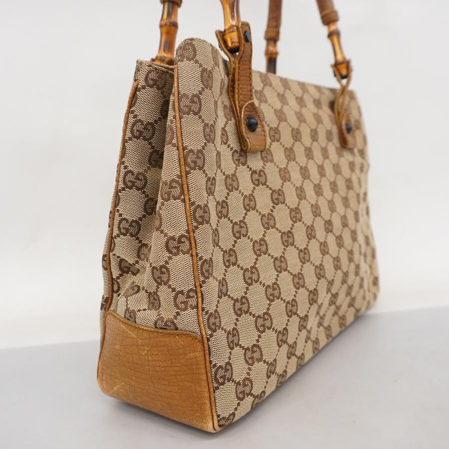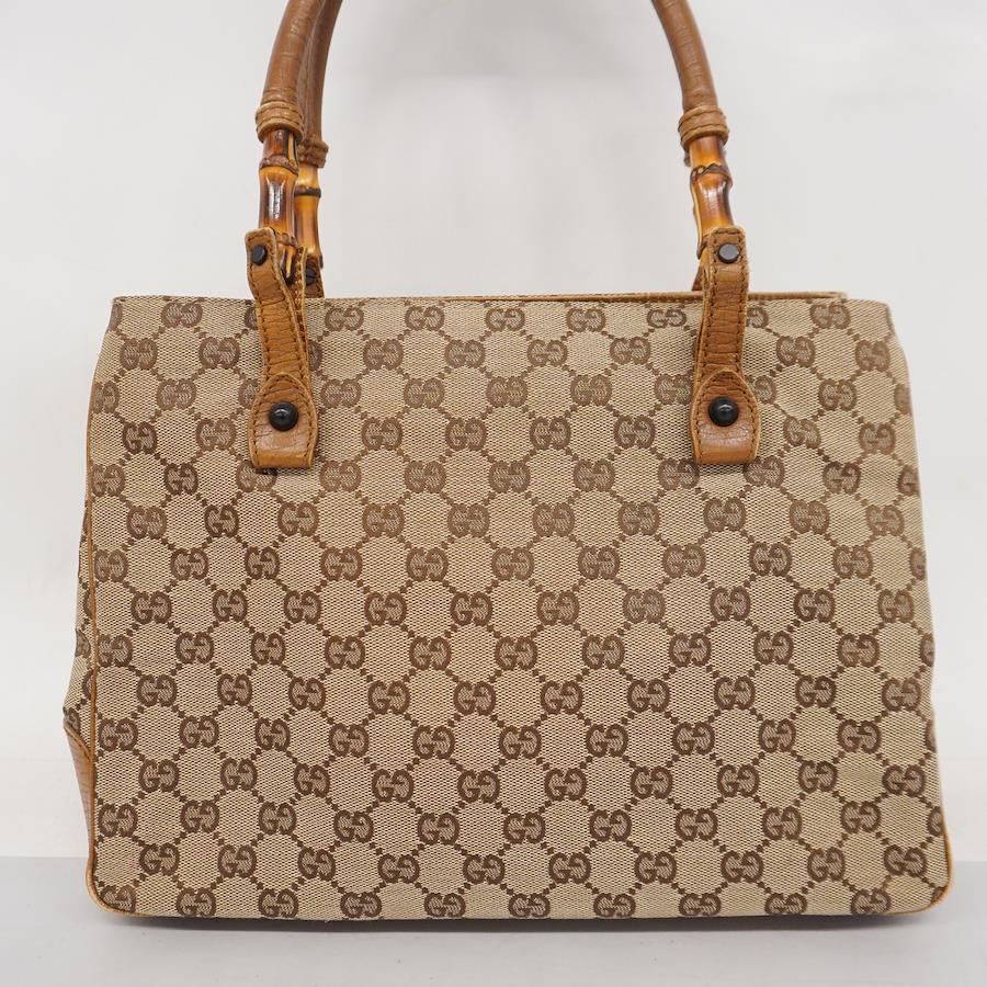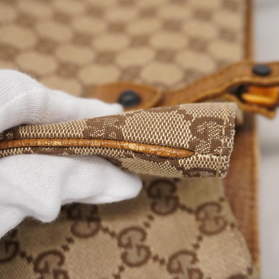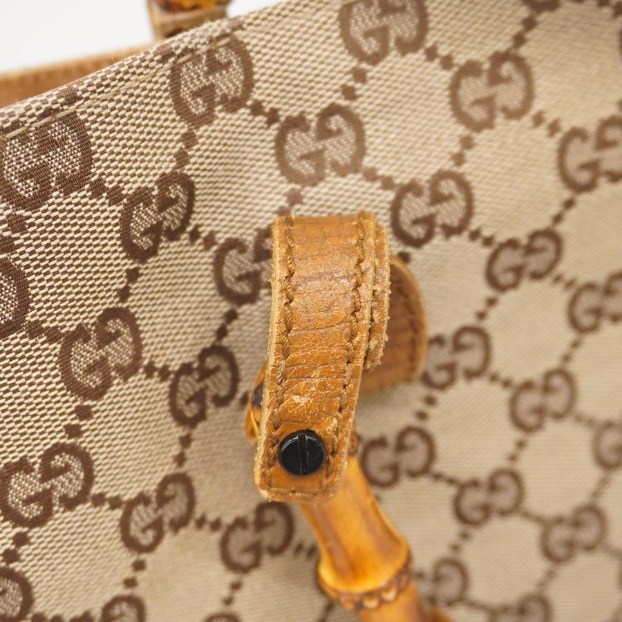 ★SALE【5ib1345-h】グッチ ハンドバッグ GGキャンバス/バンブー 112526 キャンバス ブラウン シルバー金具【中古】レディース