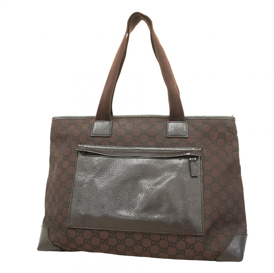 ★SALE【5ib1867】グッチ トートバッグ GGナイロン 180449 ナイロン ブラウン シルバー金具【中古】レディース