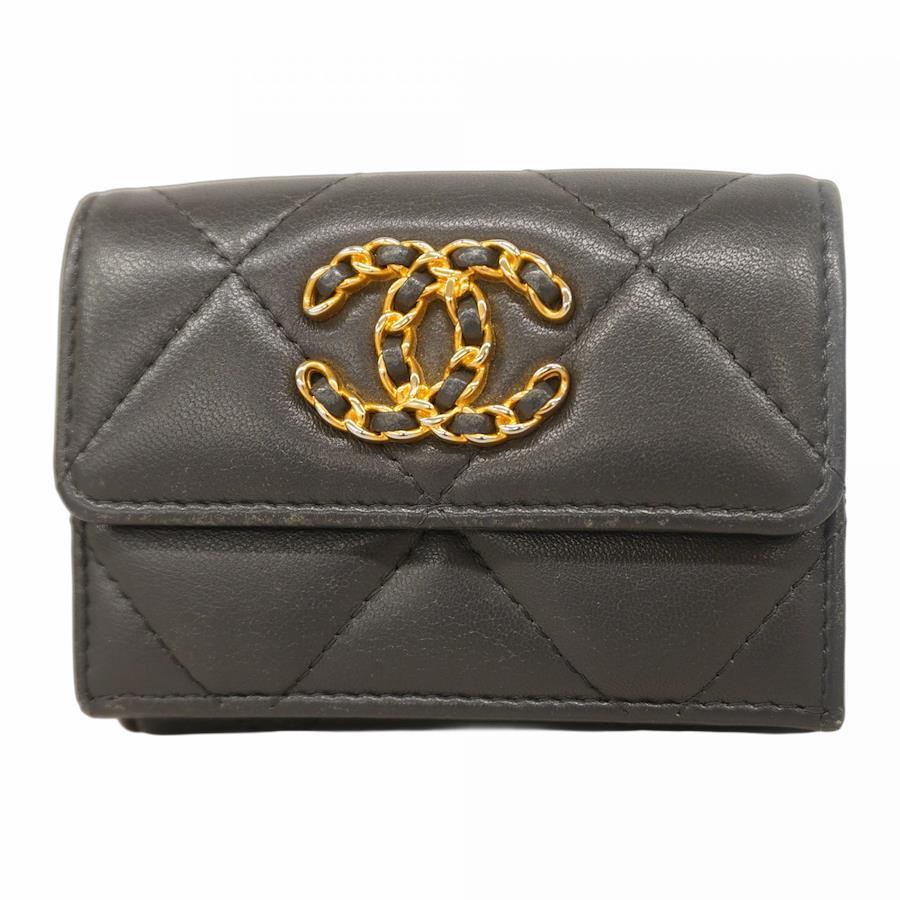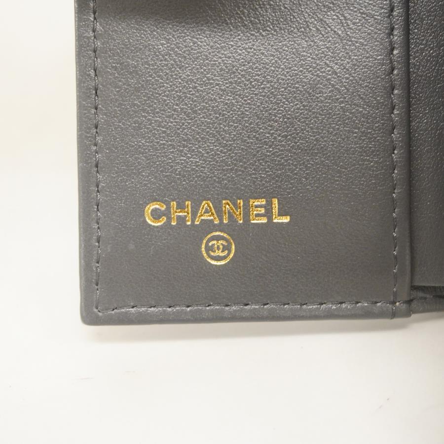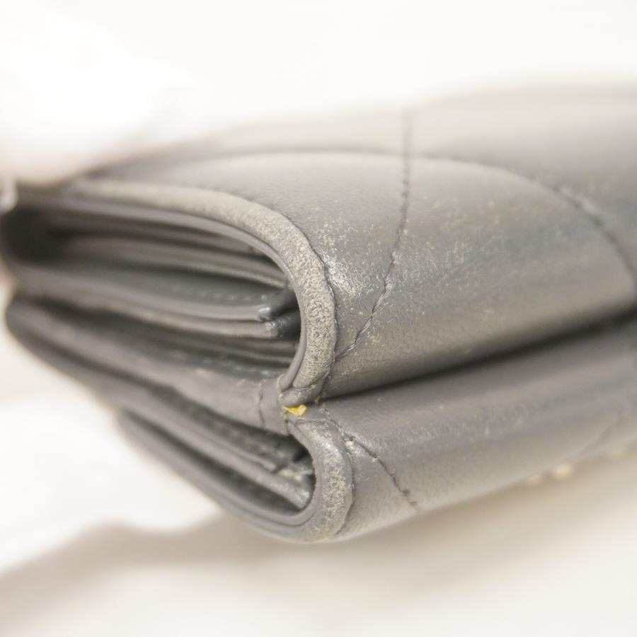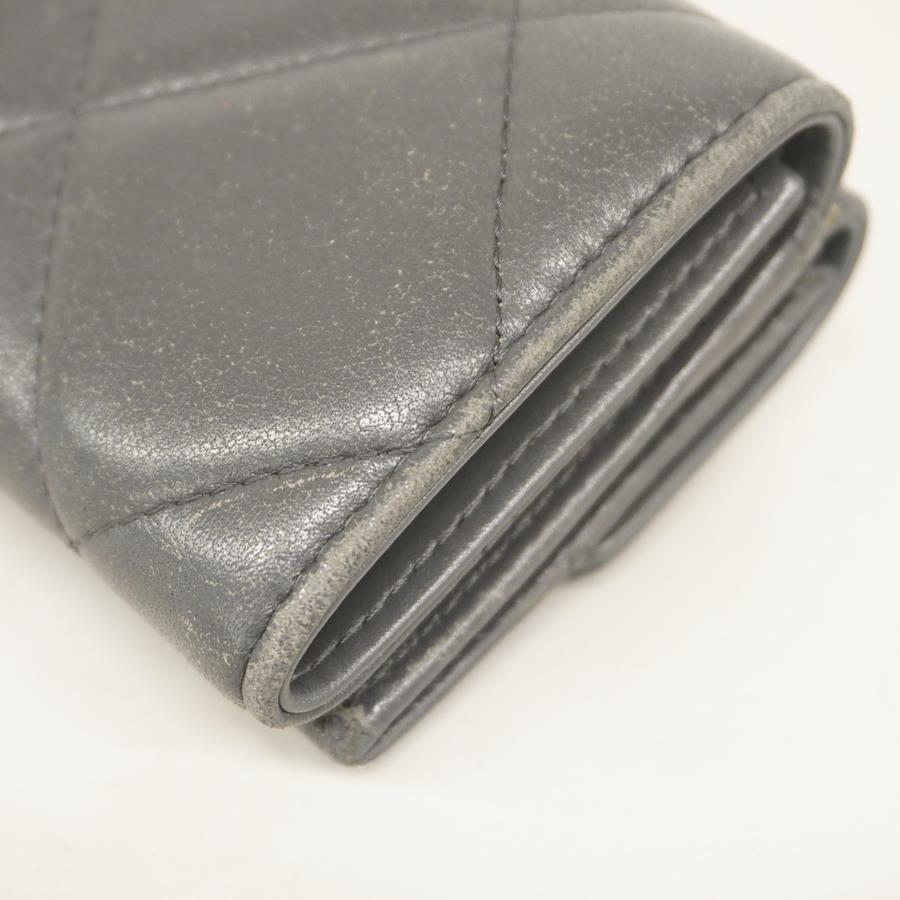 ★SALE【5ib1999】シャネル 三つ折り財布 マトラッセ ラムスキン グレー ゴールド金具【中古】レディース