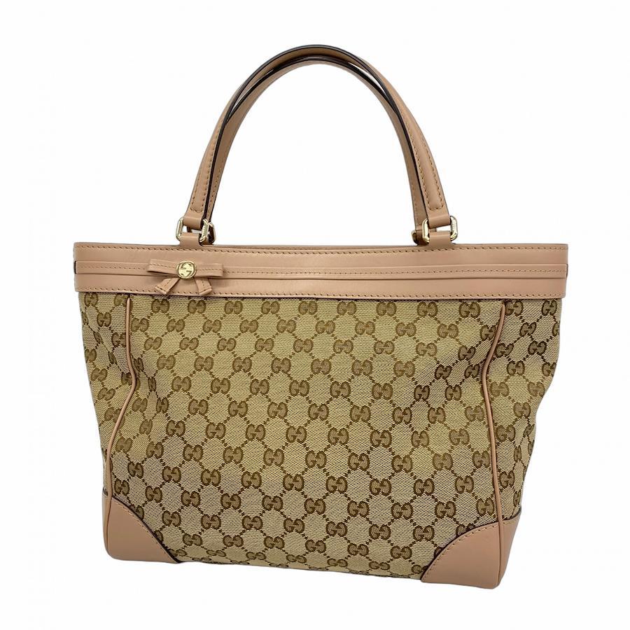 ★SALE【5ib2047-h】グッチ トートバッグ GGキャンバス インターロッキングG 257061 キャンバス ブラウン ピーチピンク シャンパンゴールド金具【中古】レディース
