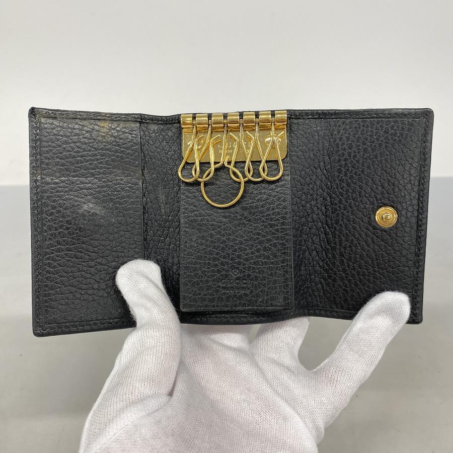 ★SALE【5ib2573-h】グッチ キーケース GGマーモント 456118 レザー ブラック ゴールド金具【中古】レディース