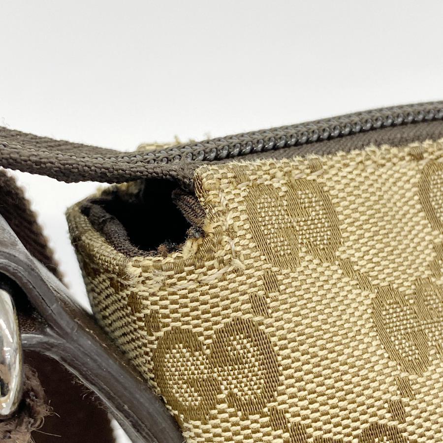 ★SALE【5ic2703-h】グッチ ショルダーバッグ GGキャンバス 145857 キャンバス レザー ブラウン ベージュ シルバー金具【中古】レディース