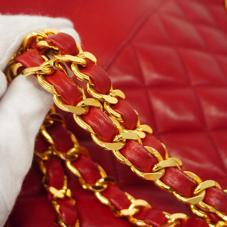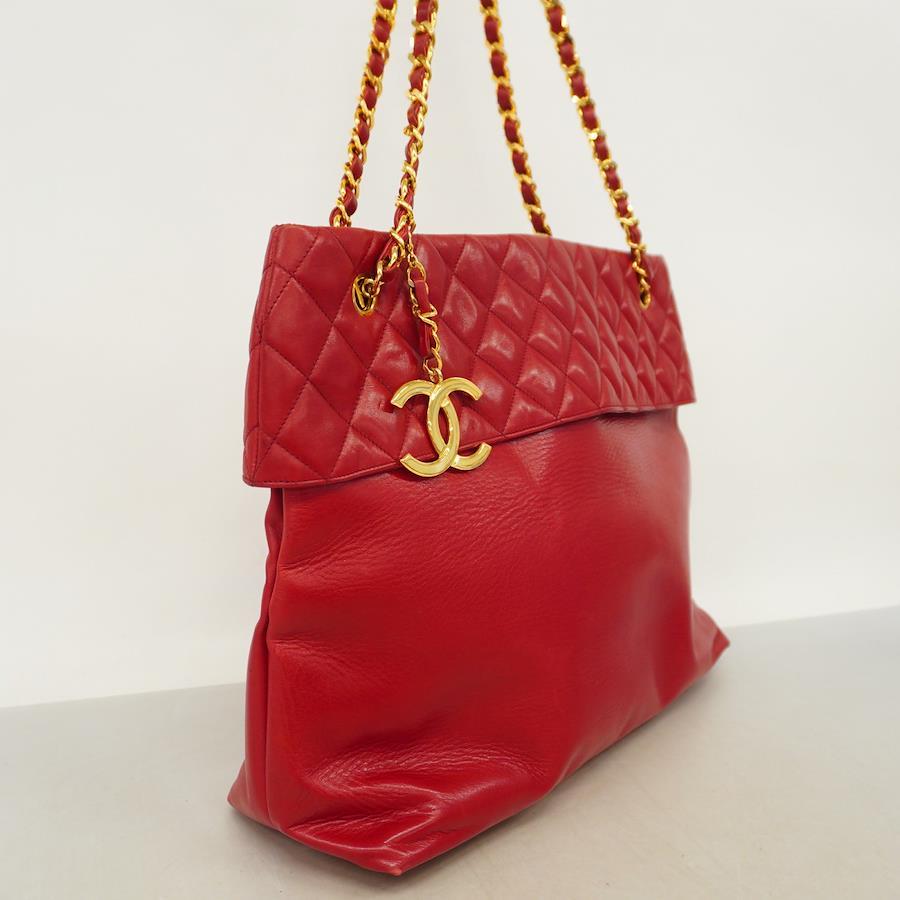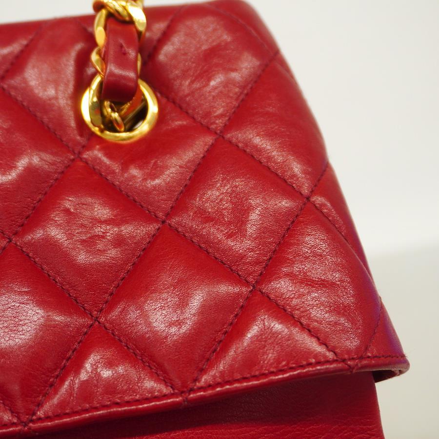 ★SALE【5ic3576】シャネル ショルダーバッグ マトラッセ ラムスキン レッド ゴールド金具【中古】レディース
