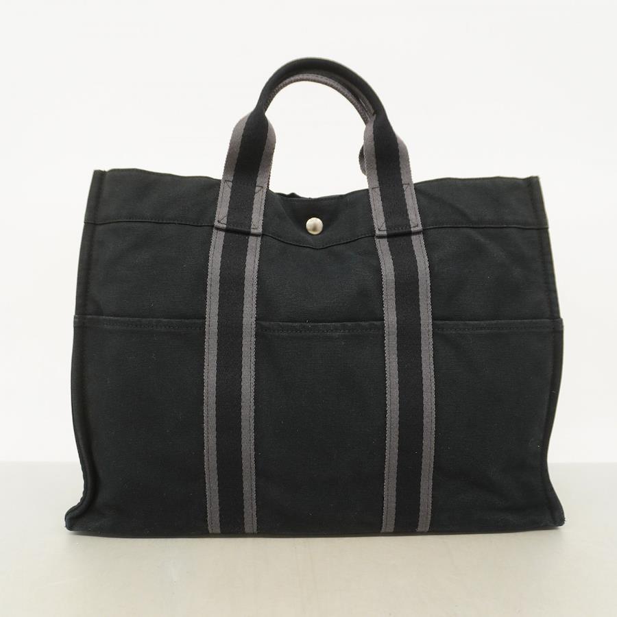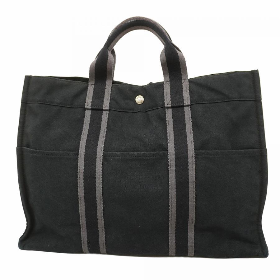 ★SALE【5ic3577】エルメス トートバッグ フールトゥMM キャンバス ブラック シルバー金具【中古】メンズ レディース ユニセックス