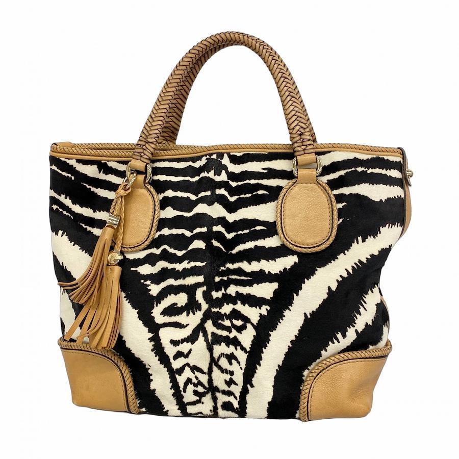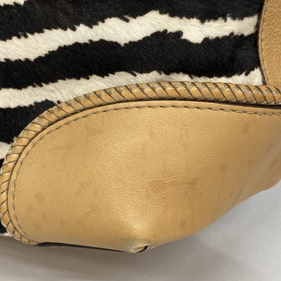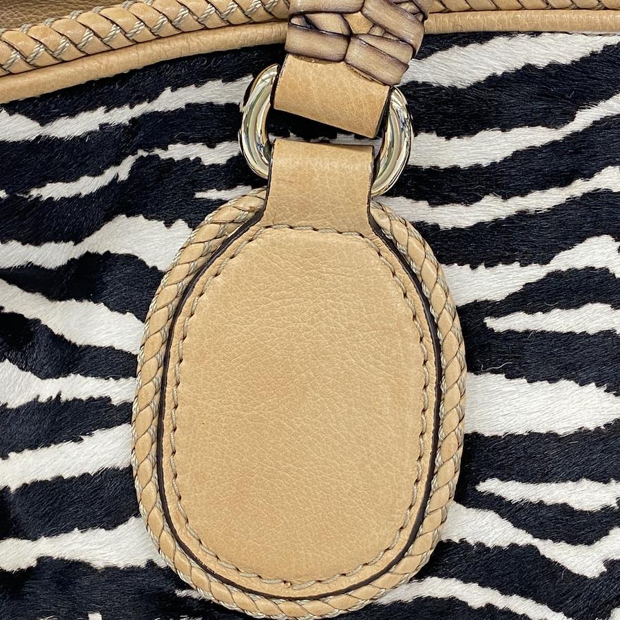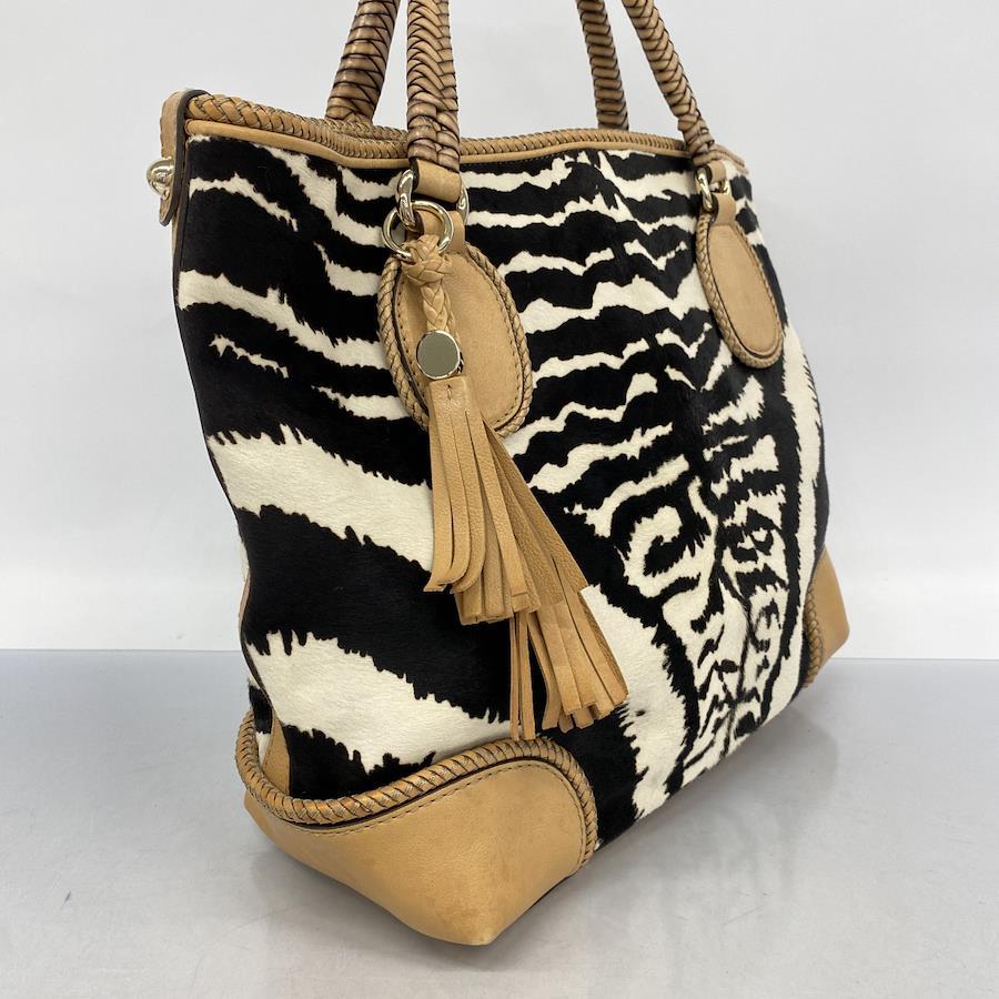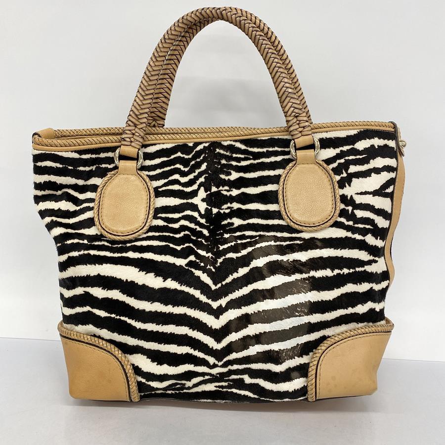 ★SALE【5ic3793-h】グッチ トートバッグ 257023 ハラコ ベージュ ブラック ホワイト シャンパンゴールド金具【中古】レディース