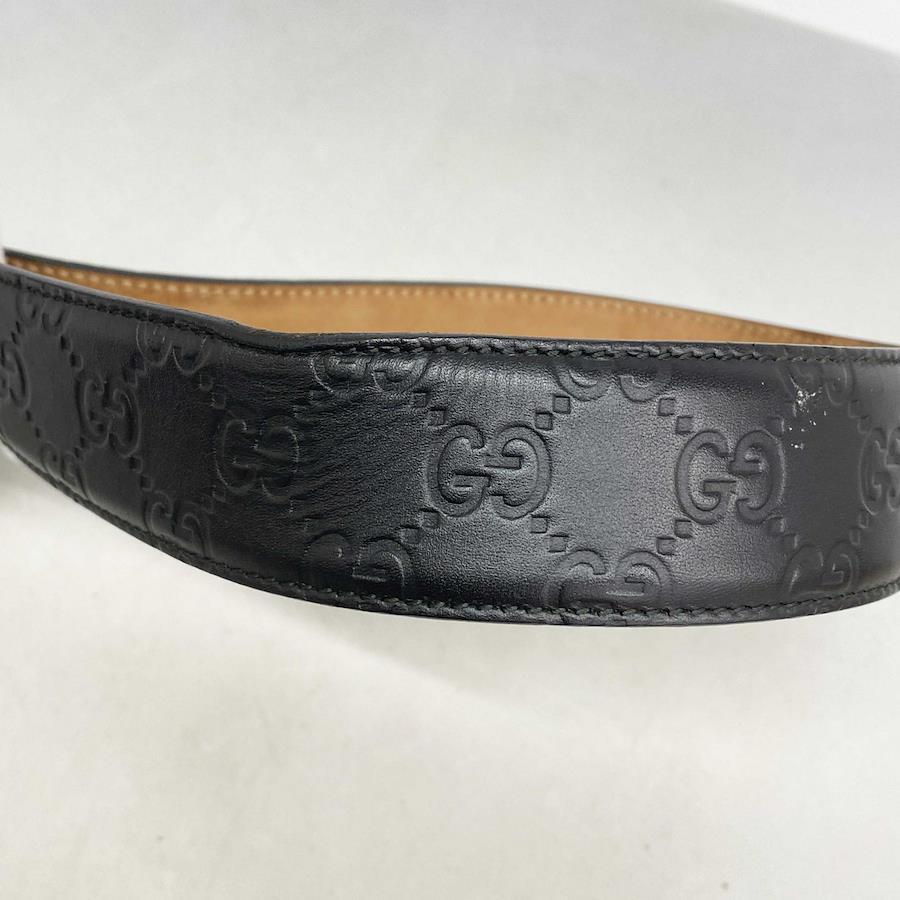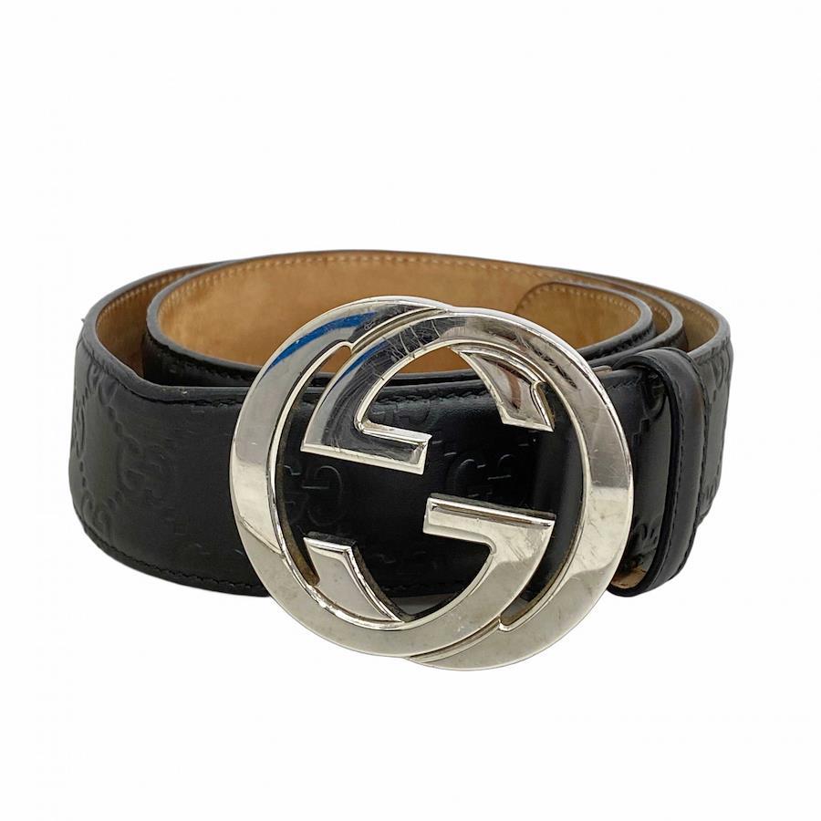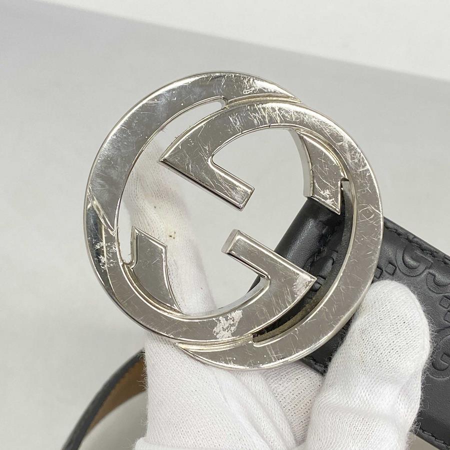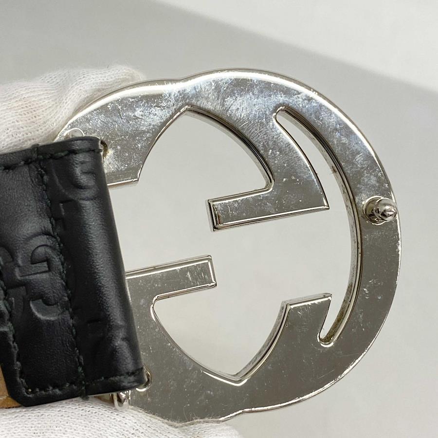 ★SALE【5ic4044-h】グッチ ベルト グッチシマ インターロッキングG 411924 レザー ブラック シルバー金具【中古】メンズ