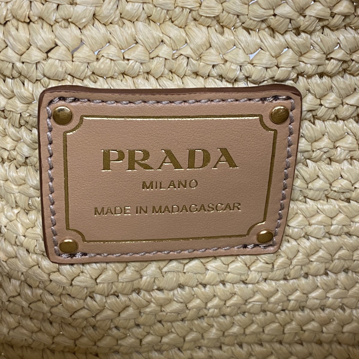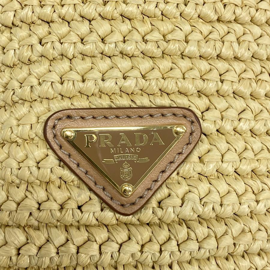 ★SALE【5ic4136-h】プラダ ハンドバッグ ストロー ベージュ ゴールド金具【中古】レディース