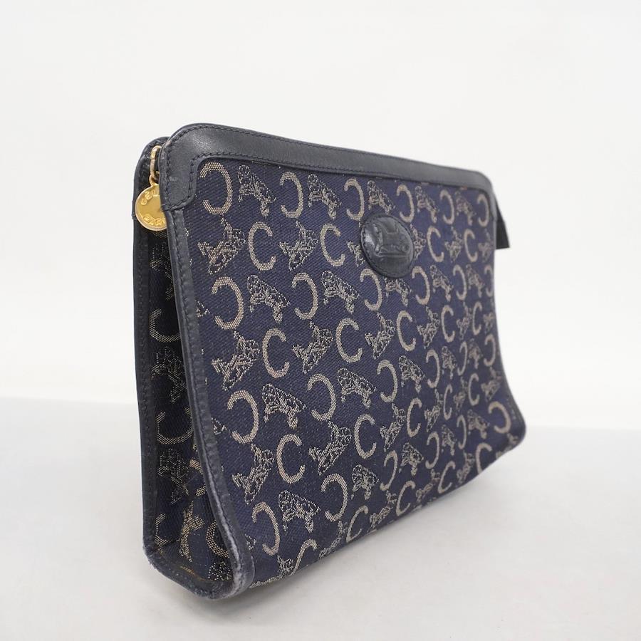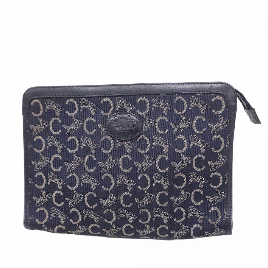 ★SALE【5id4365】セリーヌ クラッチバッグ Cマカダム キャンバス ネイビー ゴールド金具【中古】メンズ レディース ユニセックス