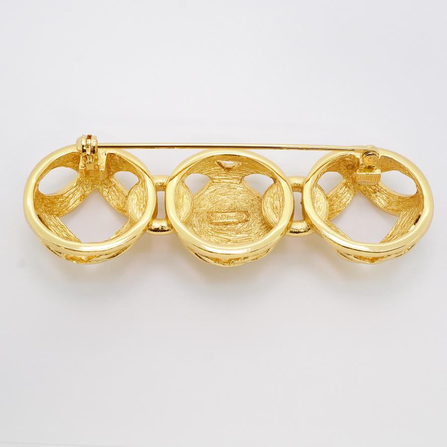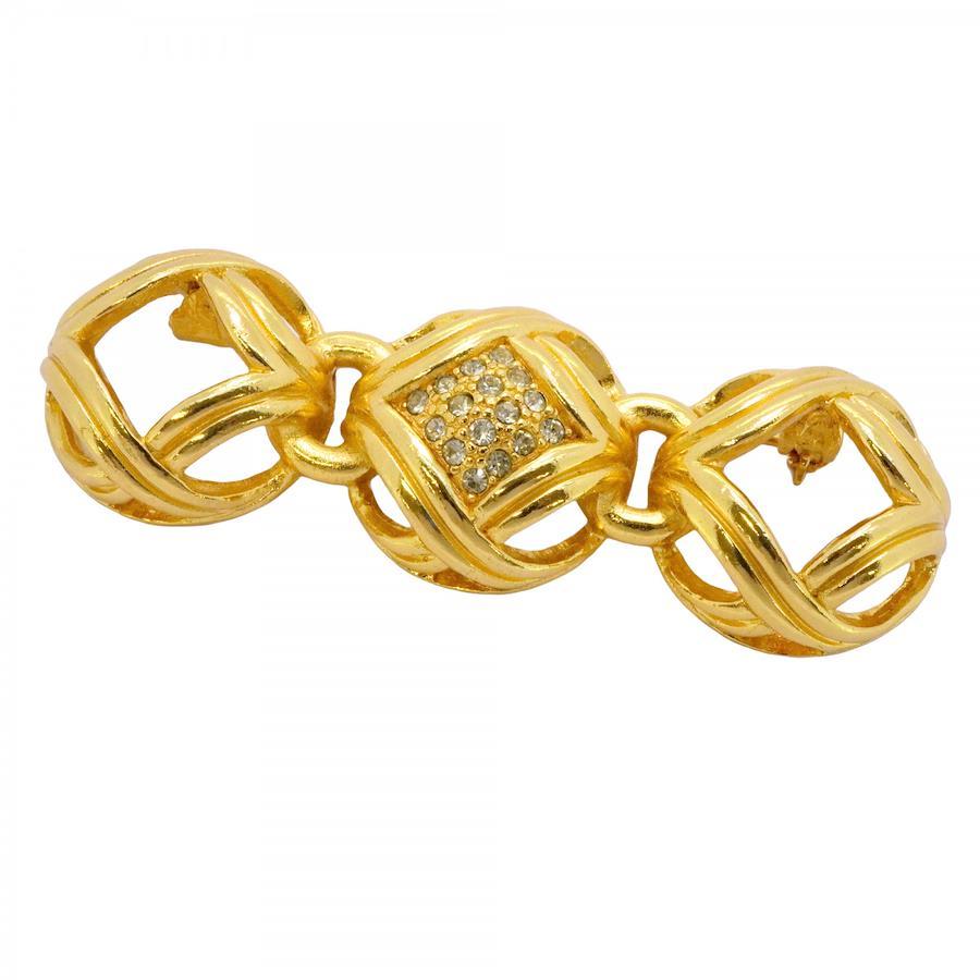 ★SALE【5jhb0760】クリスチャンディオール ブローチ GPメッキ ラインストーン ゴールド【中古】レディース