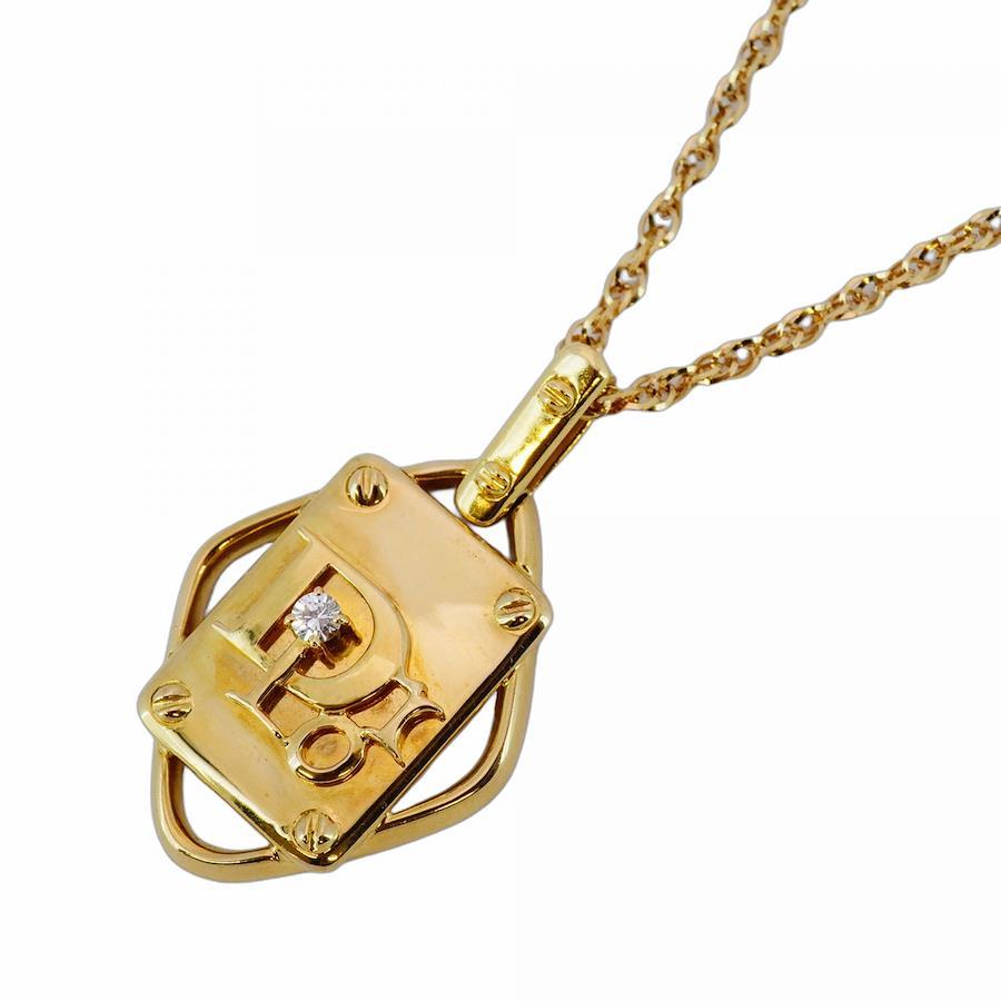 ★SALE【5jib0206】クリスチャンディオール ネックレス ディオールロゴ 菱形 1PD K18YG イエローゴールド ダイヤモンド 0.07ct【中古】レディース