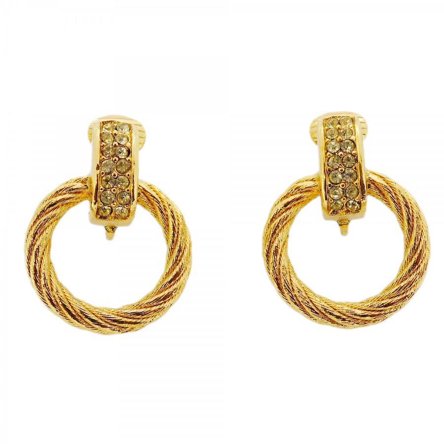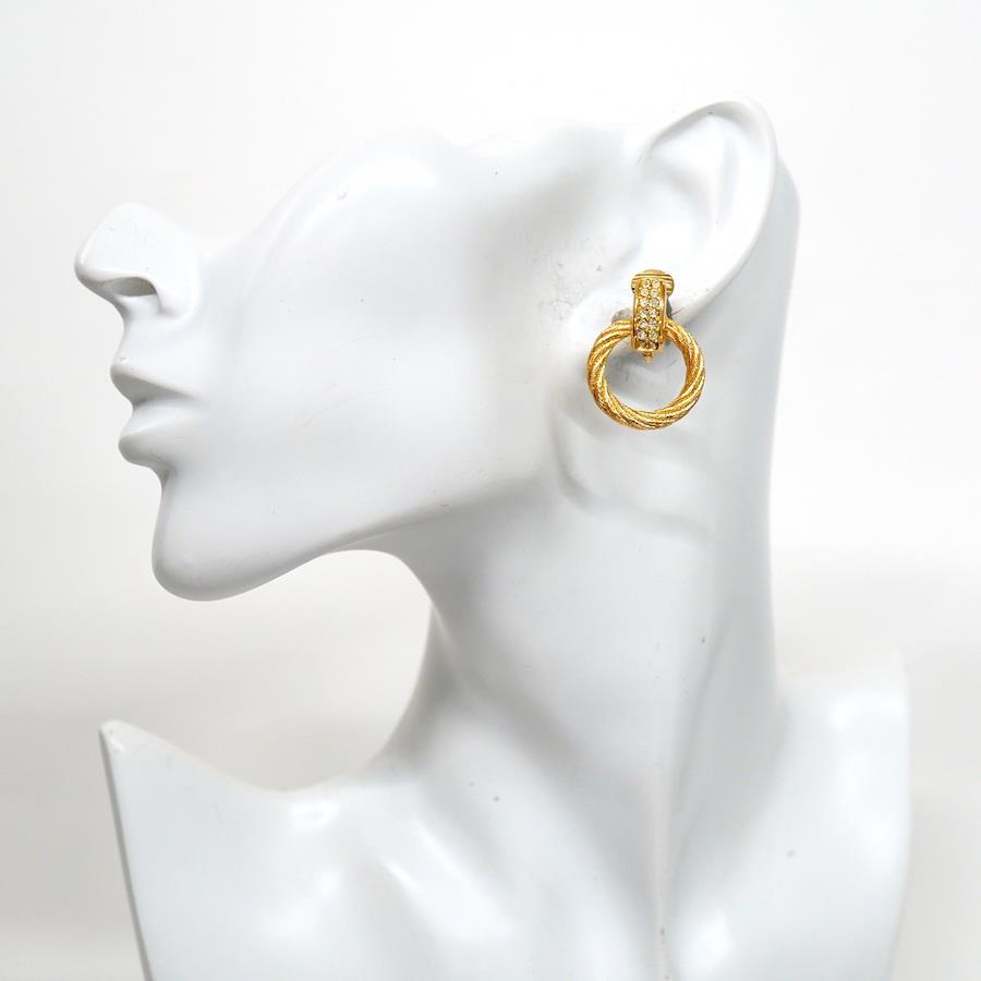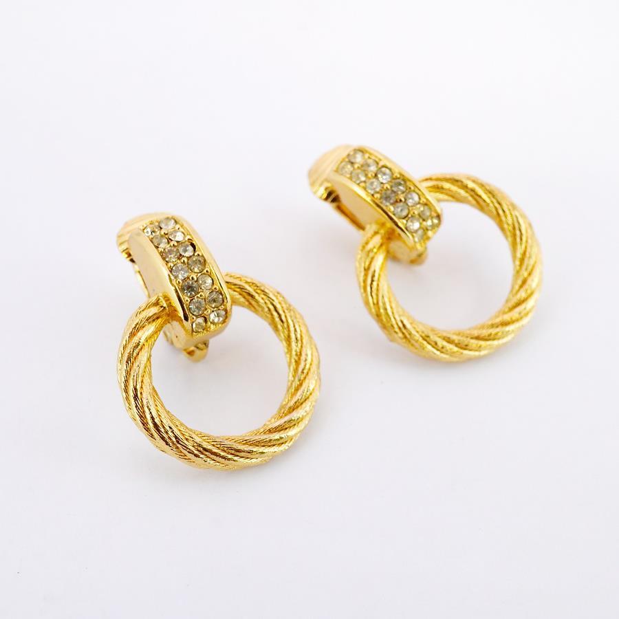 ★SALE【5jib0212】クリスチャンディオール イヤリング 丸型 サークル GPメッキ ラインストーン ゴールド【中古】レディース