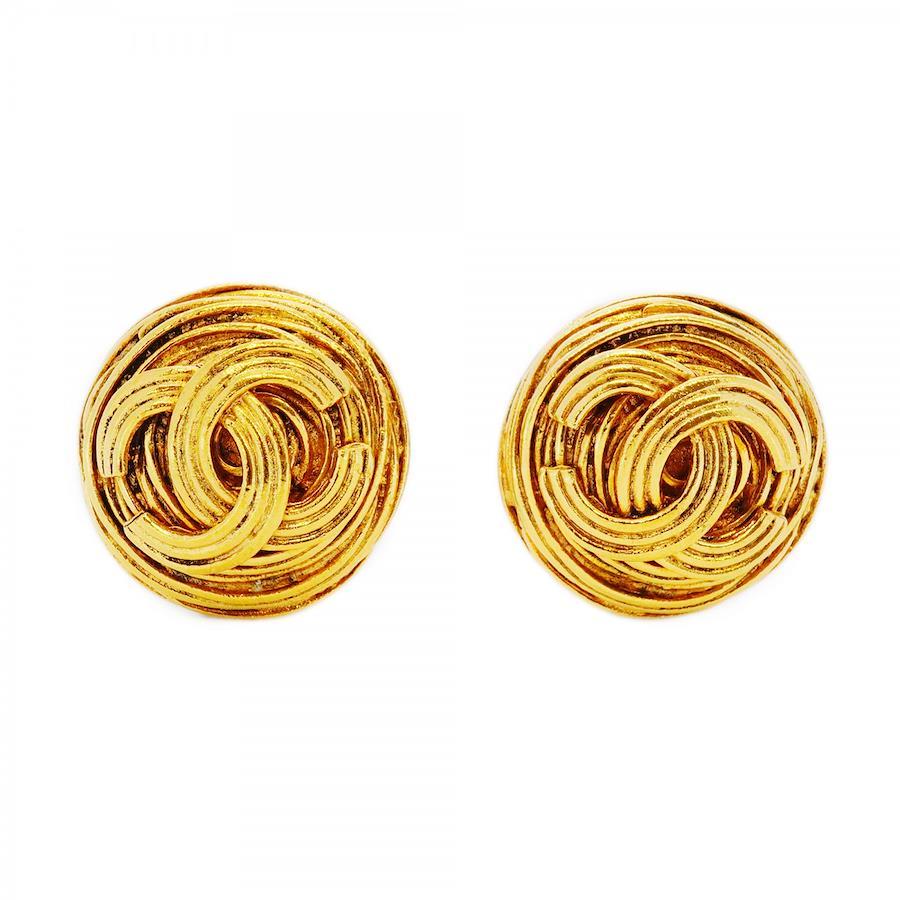 ★SALE【5jib0213】シャネル イヤリング ヴィンテージ ココマーク 丸型 サークル GPメッキ ゴールド【中古】レディース