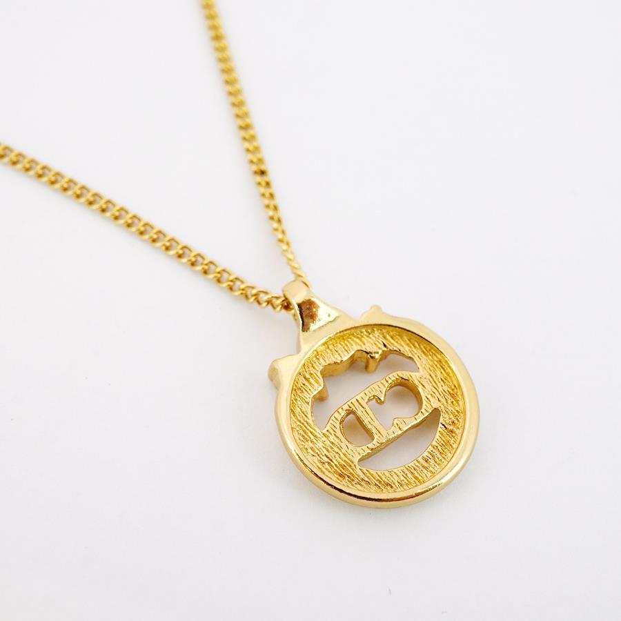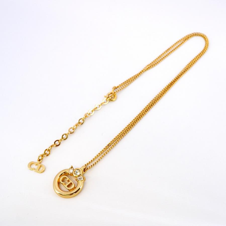 ★SALE【5jib0292】クリスチャンディオール ネックレス CDロゴ 丸型 サークル GPメッキ ラインストーン ゴールド【中古】レディース