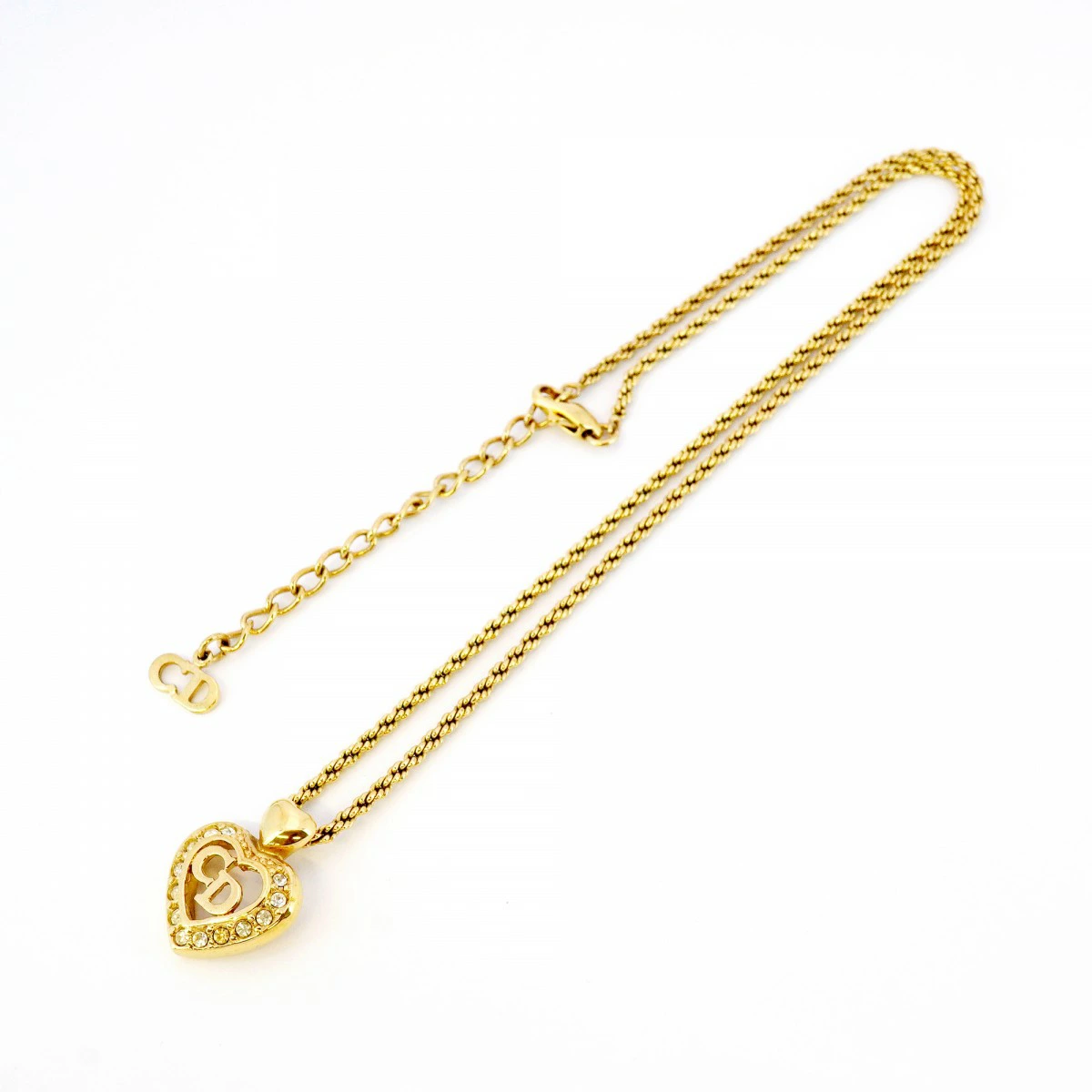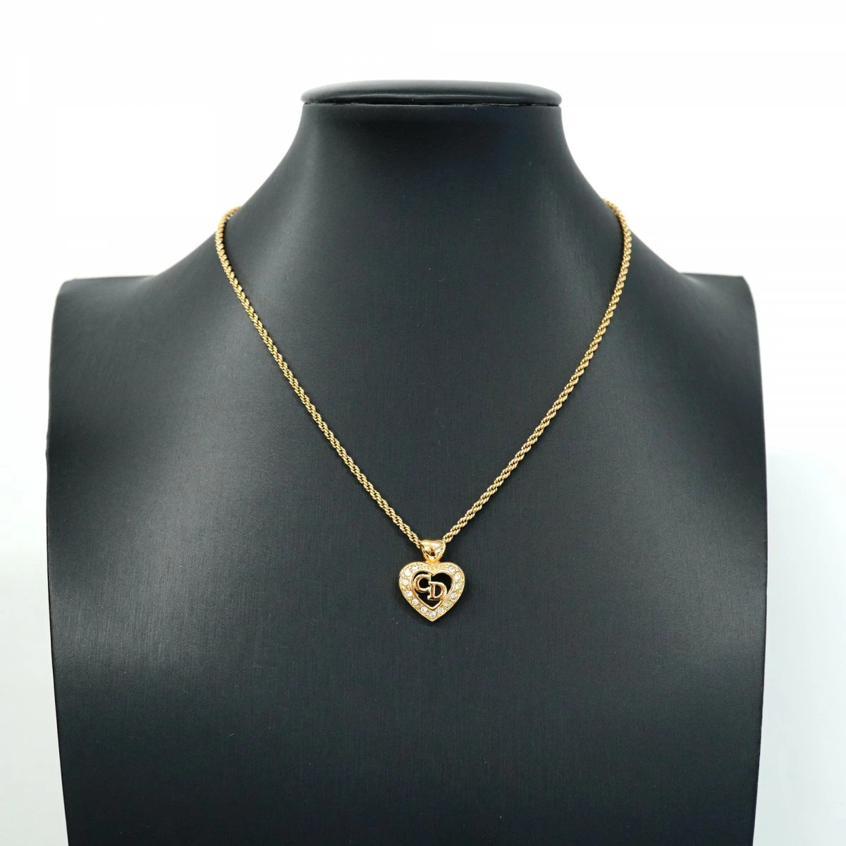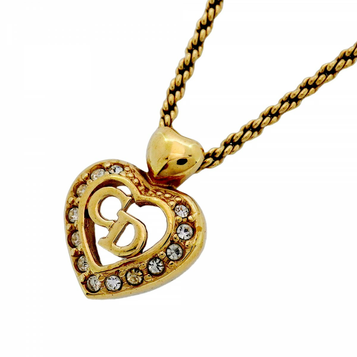★SALE【5jib0711】クリスチャンディオール ネックレス CDロゴ ハートモチーフ GPメッキ ラインストーン ゴールド【中古】レディース