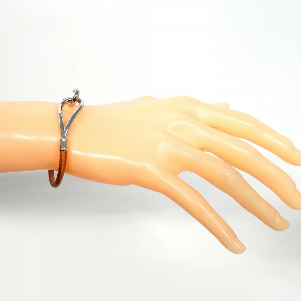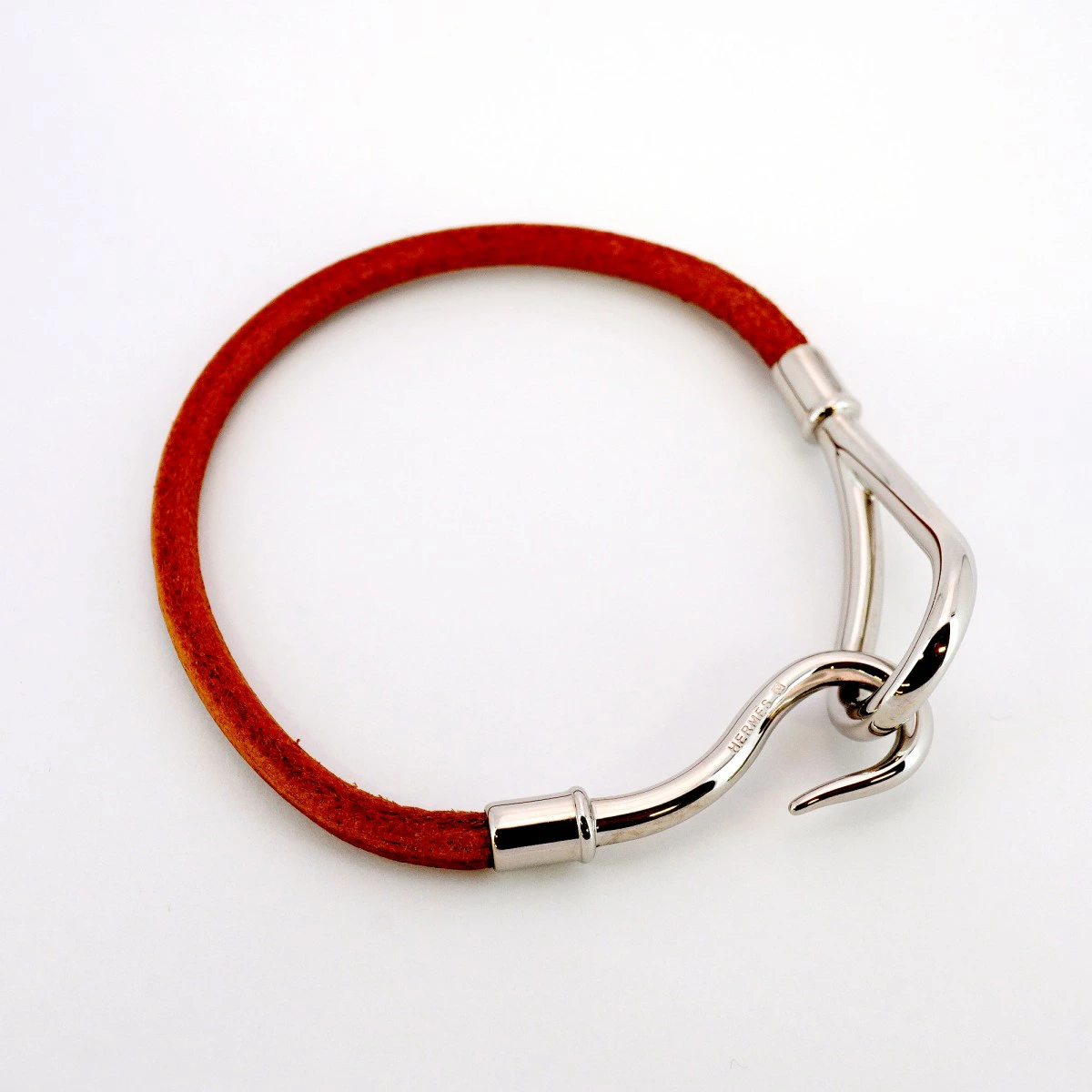 ★SALE【5jmb0419】エルメス ブレスレット ジャンボフック メタル レザー シルバー ブラウン【中古】レディース