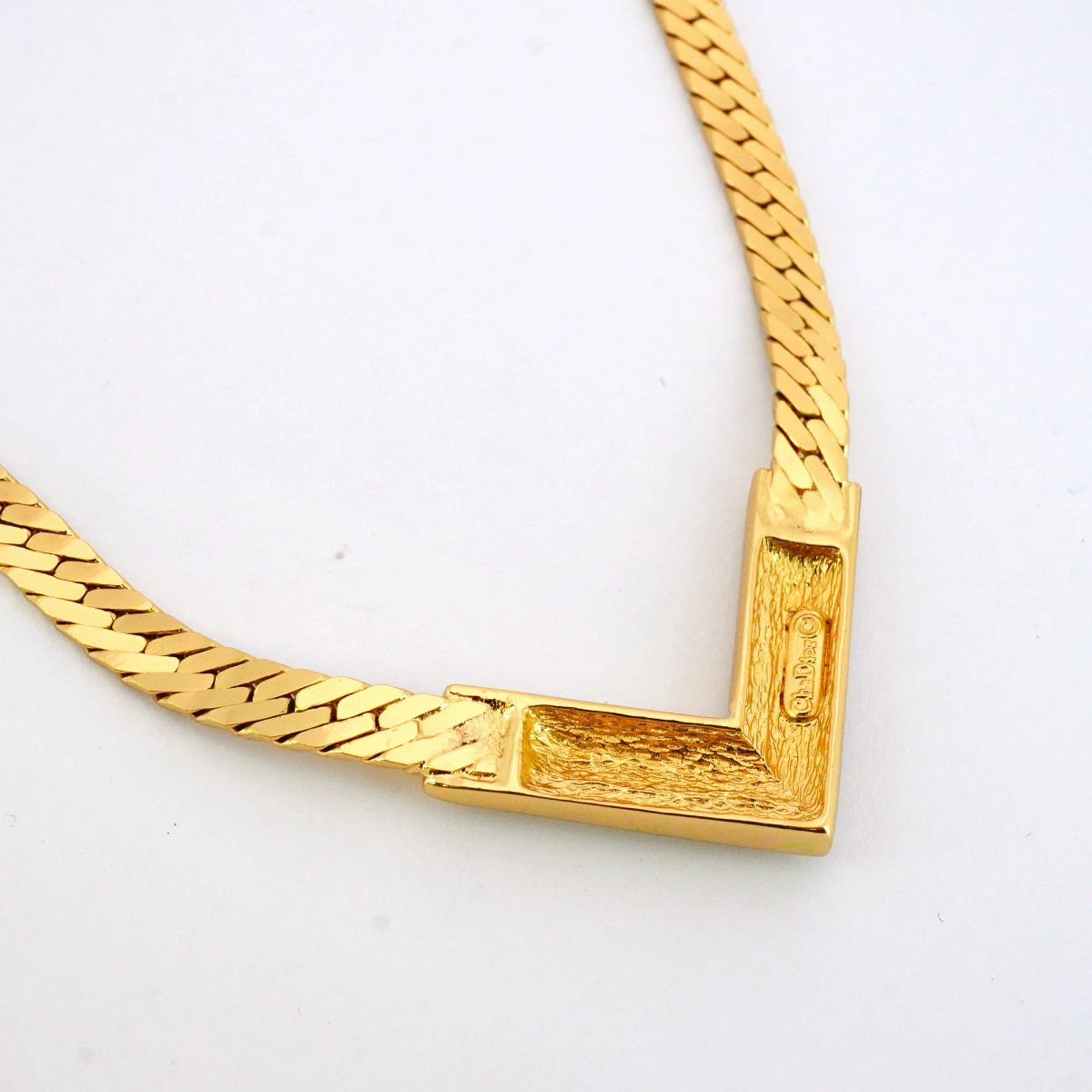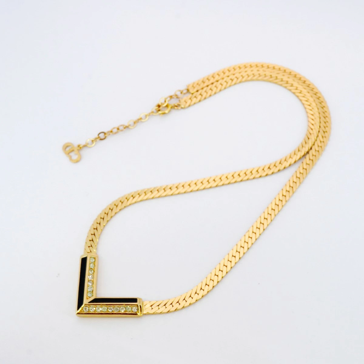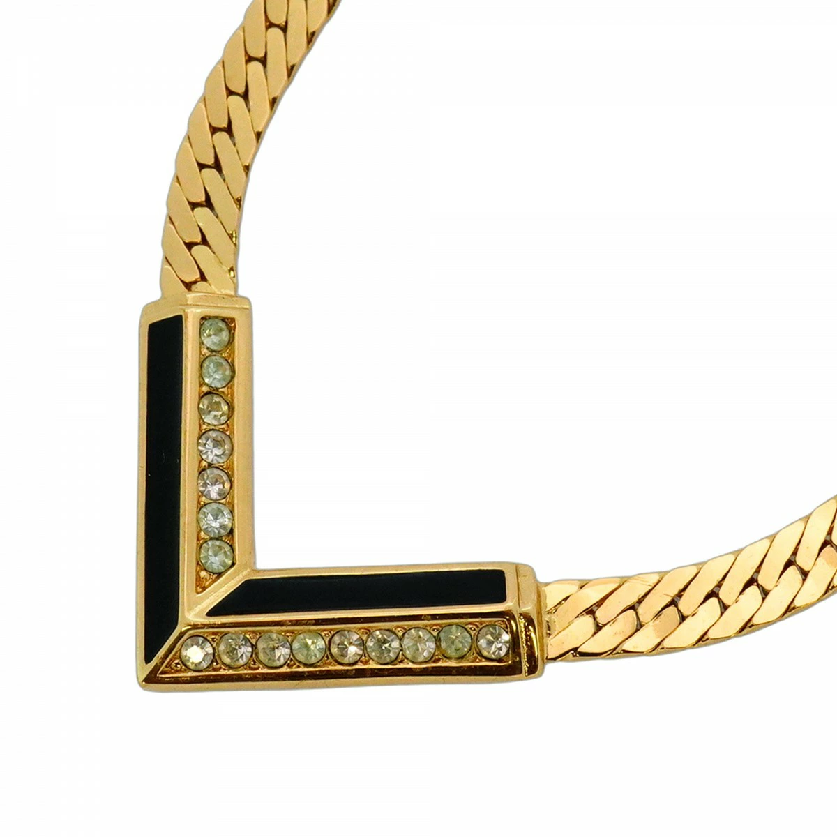 ★SALE【5jmb0420】クリスチャンディオール ネックレス GPメッキ ラインストーン ゴールド ブラック【中古】レディース
