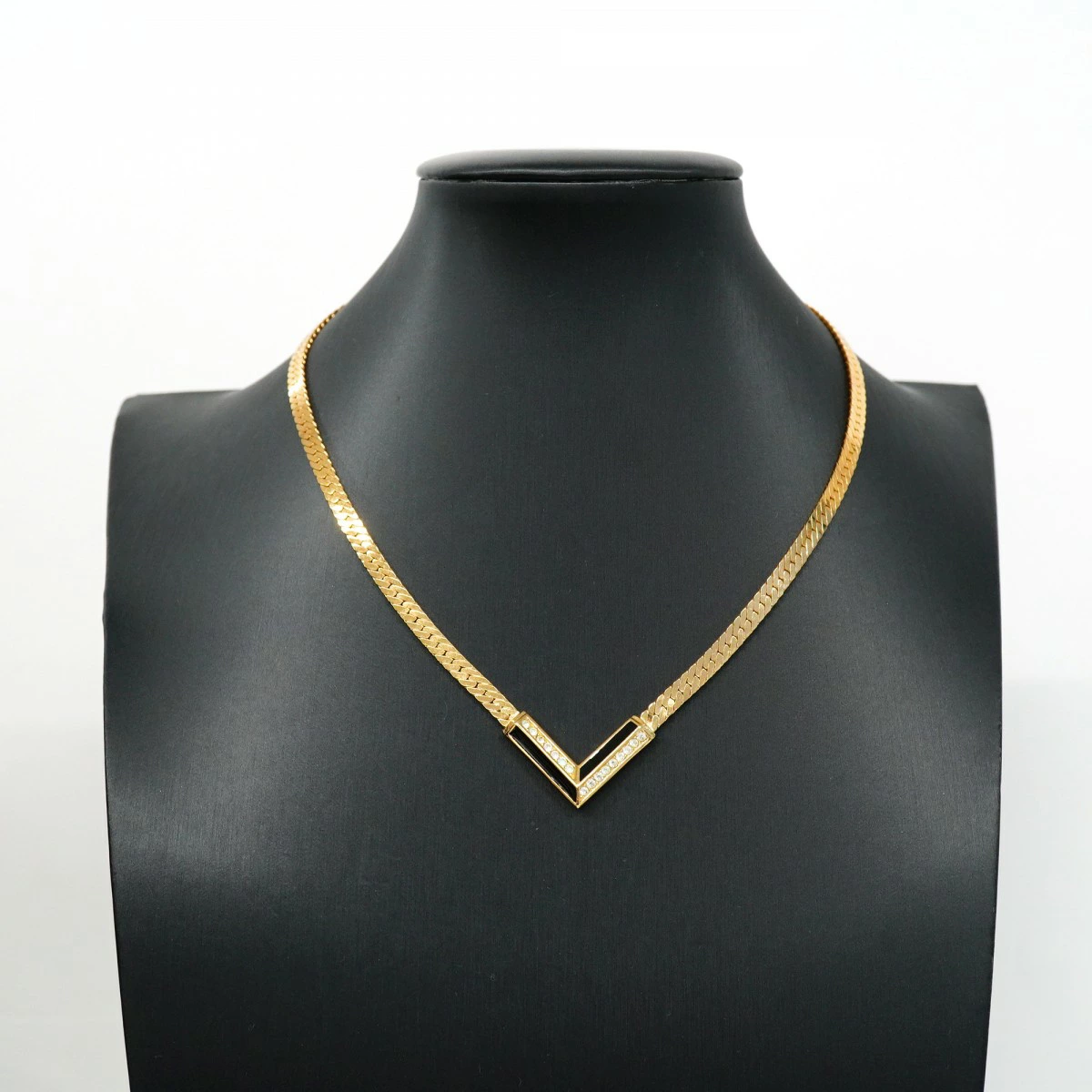 [5jmb0420] Christian Dior Necklace, GP Plated, Rhinestone, Gold, Black [Pre-owned] Women's