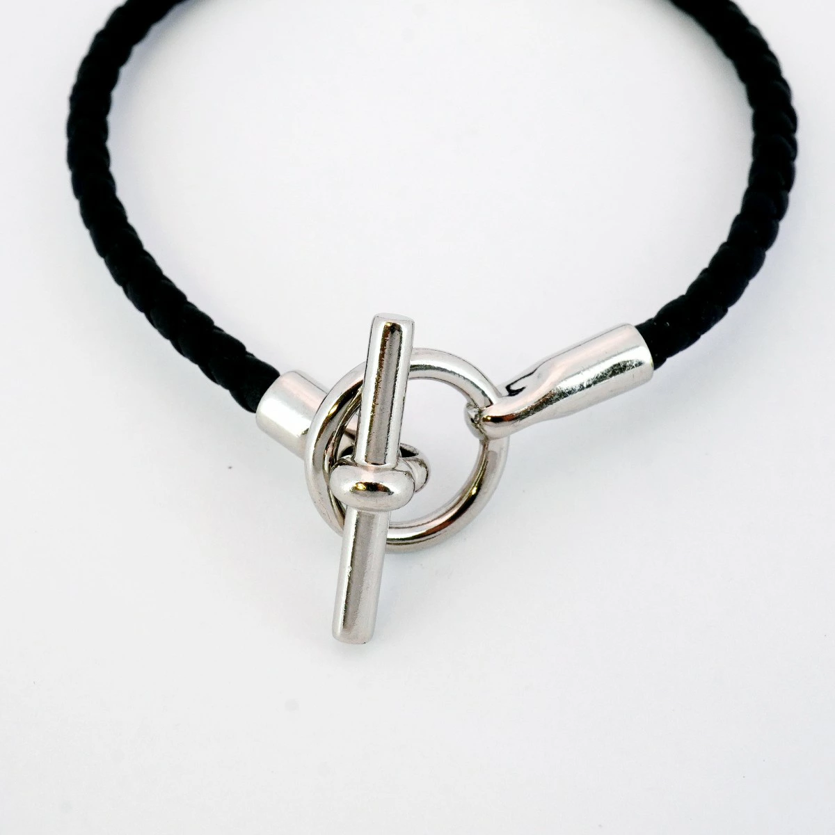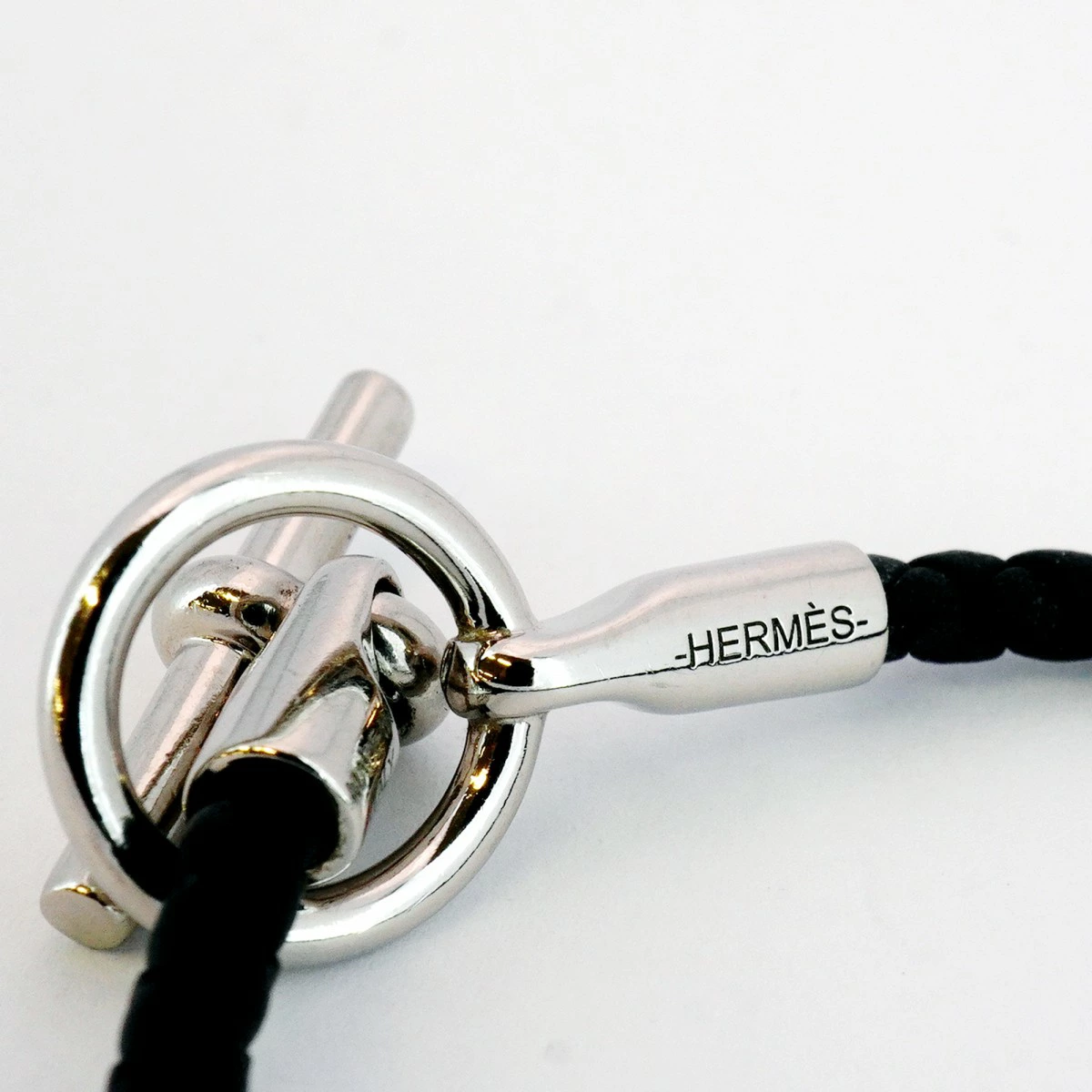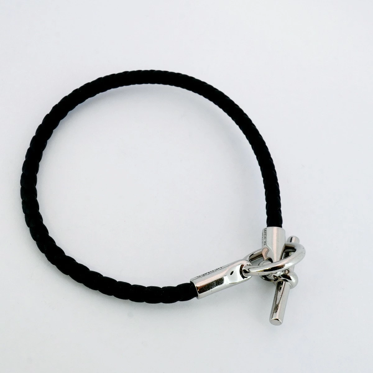★SALE【5jmb0569】エルメス ブレスレット グレナン GPメッキ レザー シルバー ブラック【中古】メンズ レディース ユニセックス