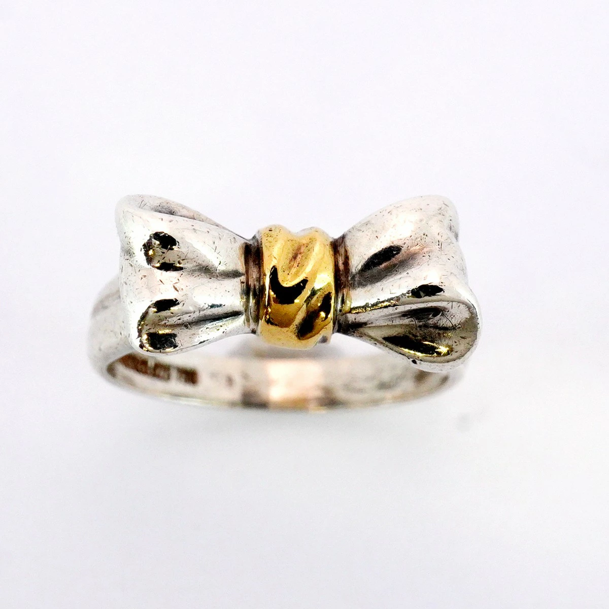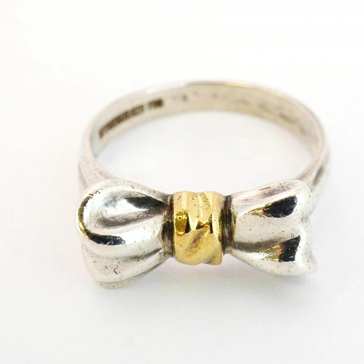 ★SALE【5job0142】ティファニー リング リボン K18YG イエローゴールド シルバー925 9号【中古】レディース
