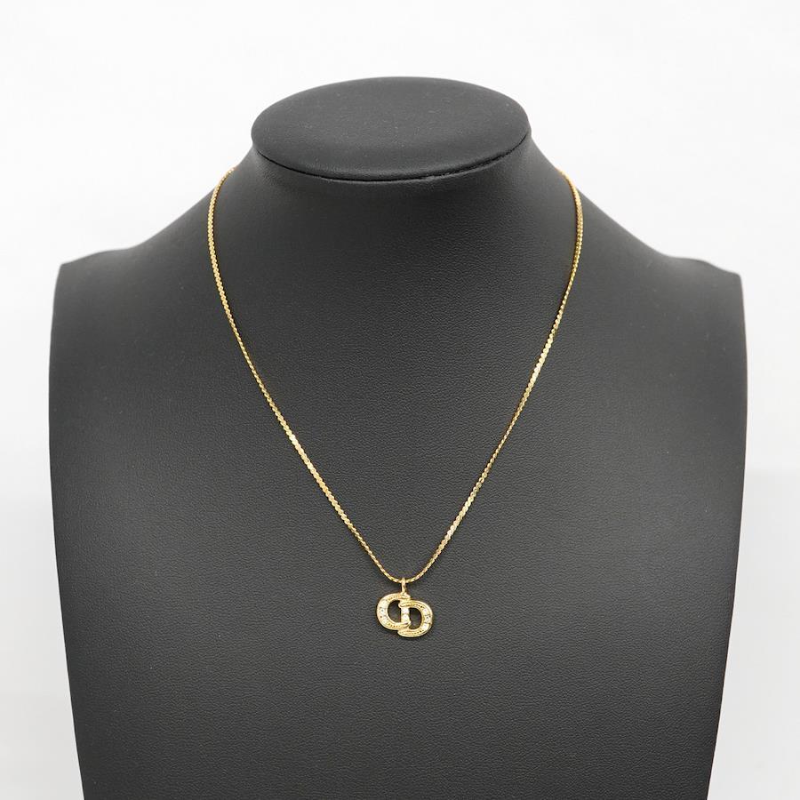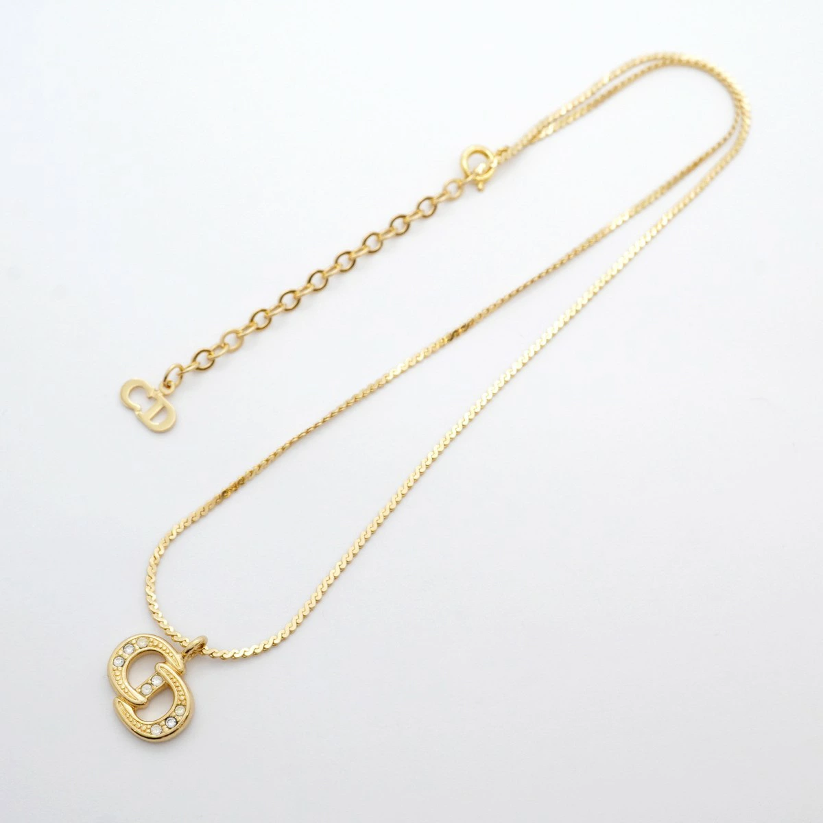 ★SALE【5job0185】クリスチャンディオール ネックレス CDロゴ GPメッキ ラインストーン ゴールド【中古】レディース