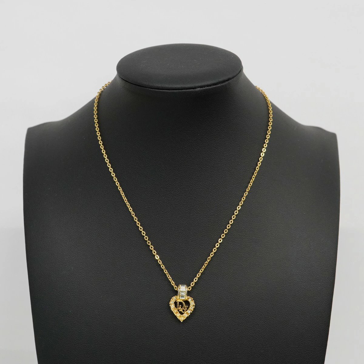 ★SALE【5job0195】クリスチャンディオール ネックレス ディオールロゴ ハートモチーフ GPメッキ ラインストーン ゴールド【中古】レディース