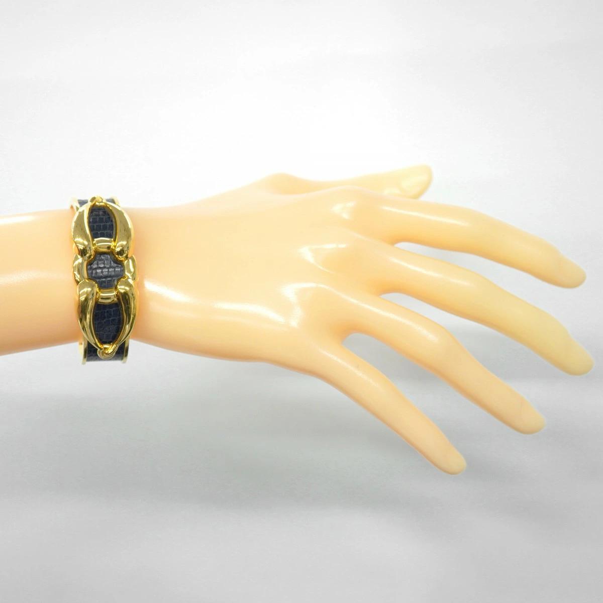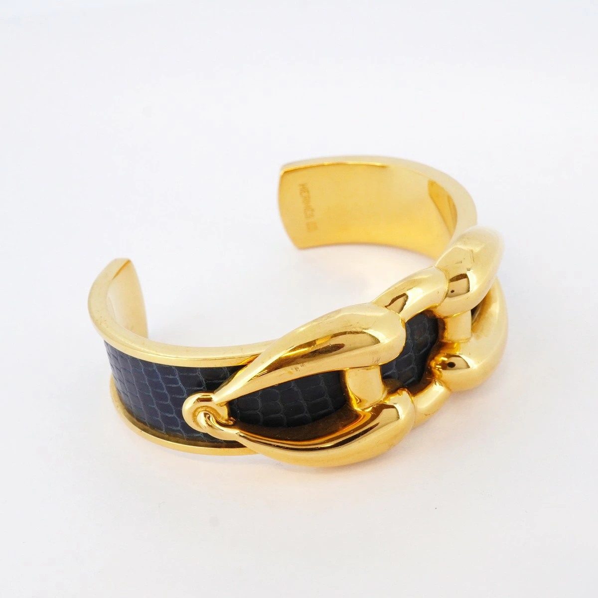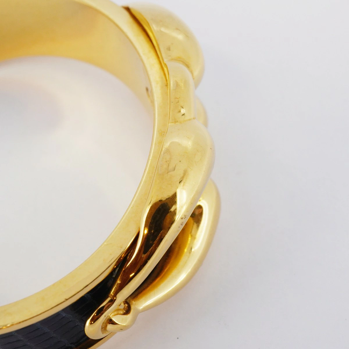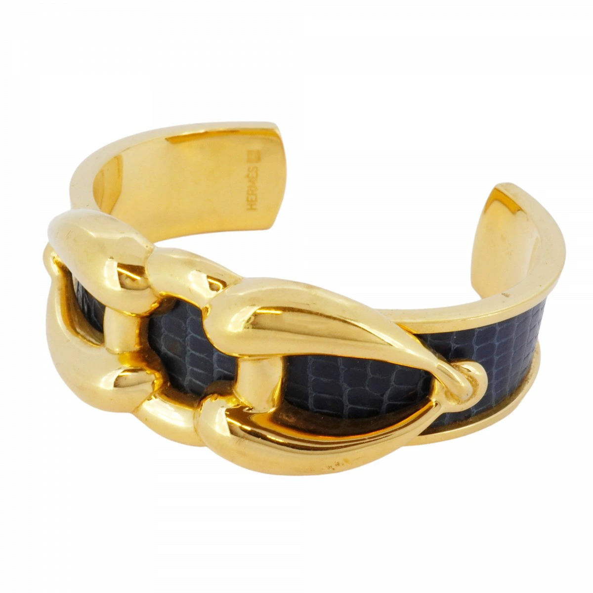 ★SALE【5jpb0344】エルメス バングル GPメッキ リザード ゴールド ネイビー【中古】レディース