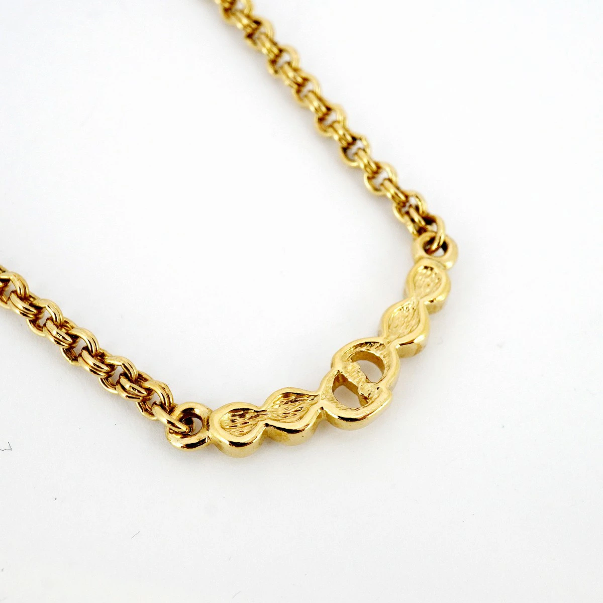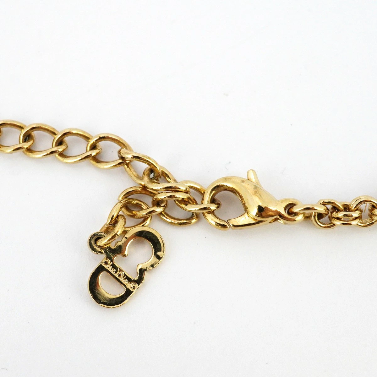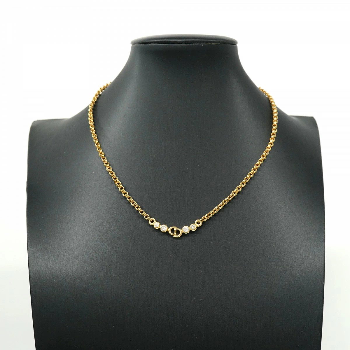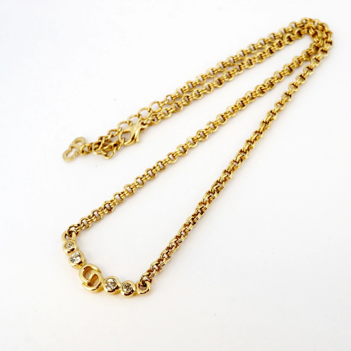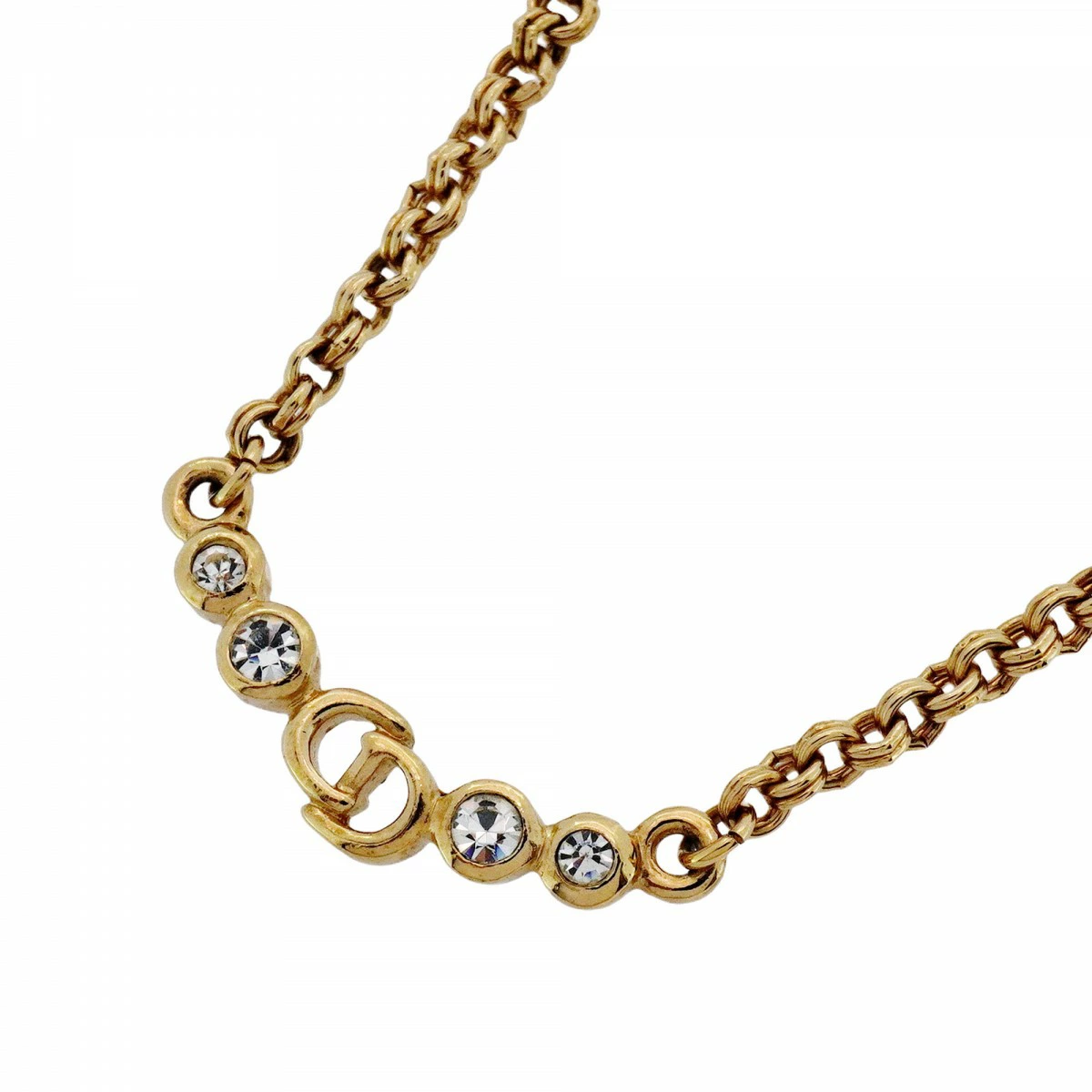 ★SALE【5jpb0414】クリスチャンディオール ネックレス CDロゴ GPメッキ ラインストーン ゴールド【中古】レディース