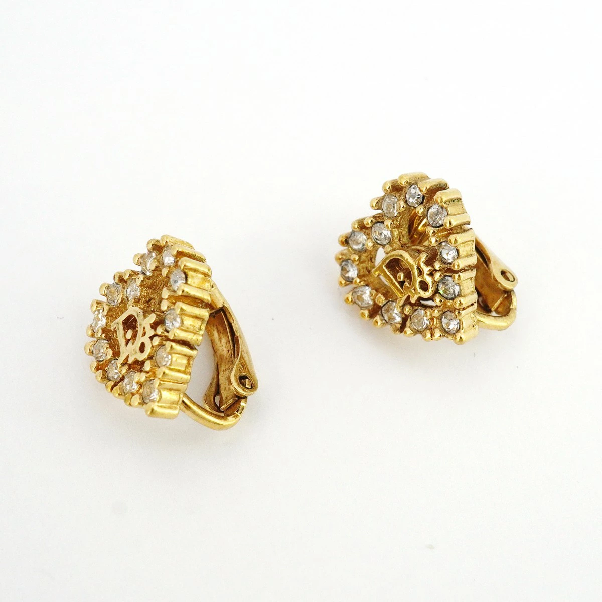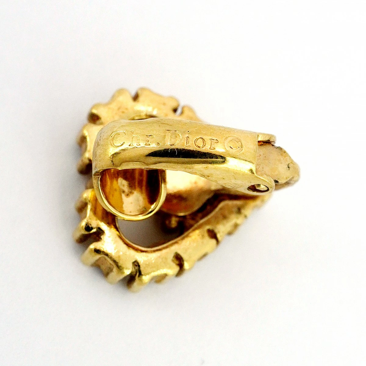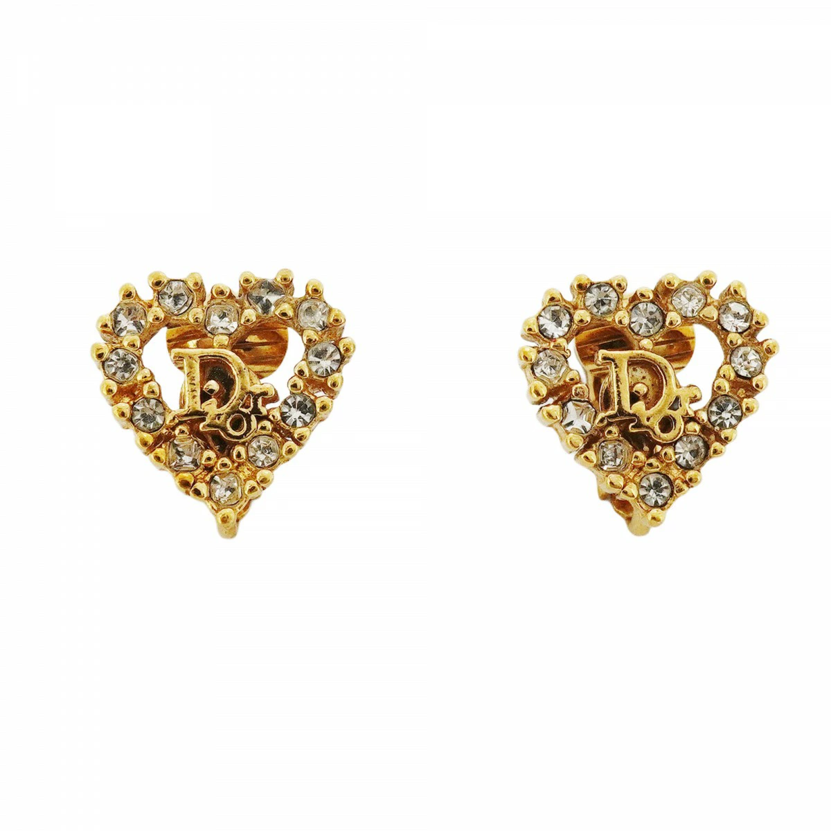 ★SALE【5jpb0422】クリスチャンディオール イヤリング ディオールロゴ ハートモチーフ GPメッキ ラインストーン ゴールド【中古】レディース