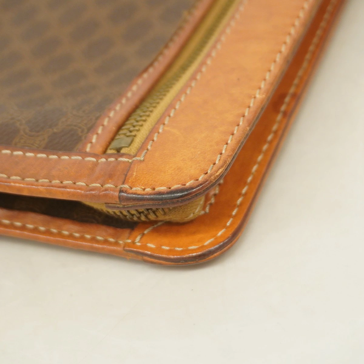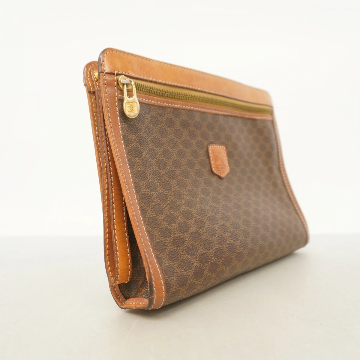 ★SALE【5mc2868】セリーヌ クラッチバッグ マカダム PVC ブラウン ゴールド金具【中古】メンズ
