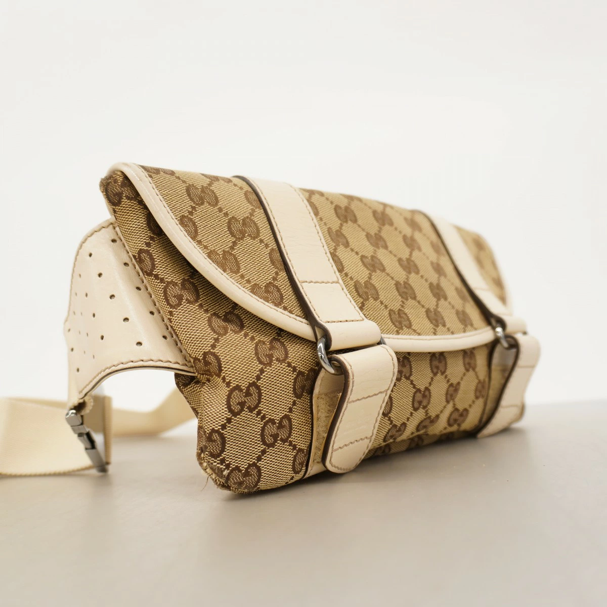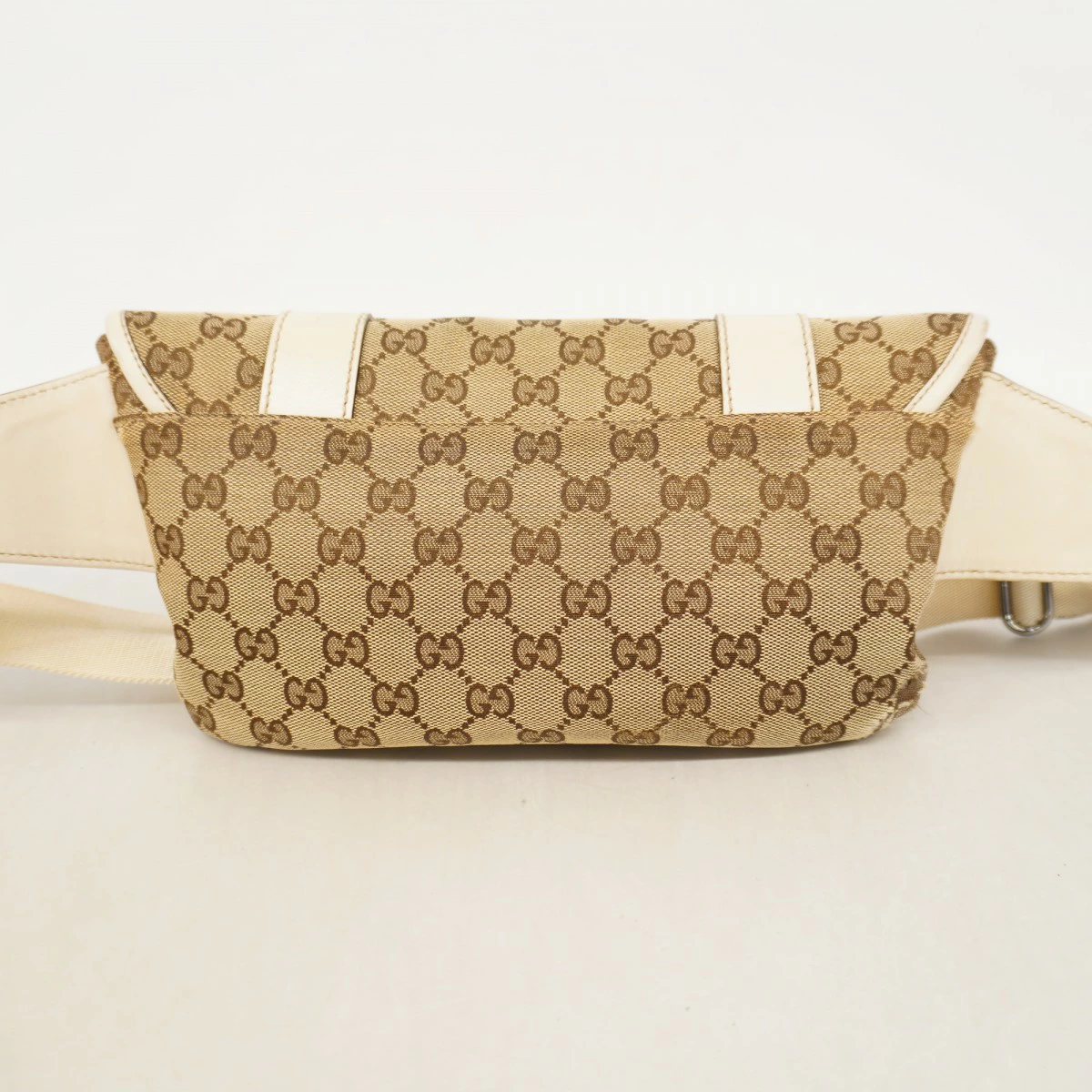 ★最終価格★SALE【5md4999】グッチ ウエストバッグ GGキャンバス 145851 キャンバス ベージュ アイボリー シルバー金具【中古】レディース
