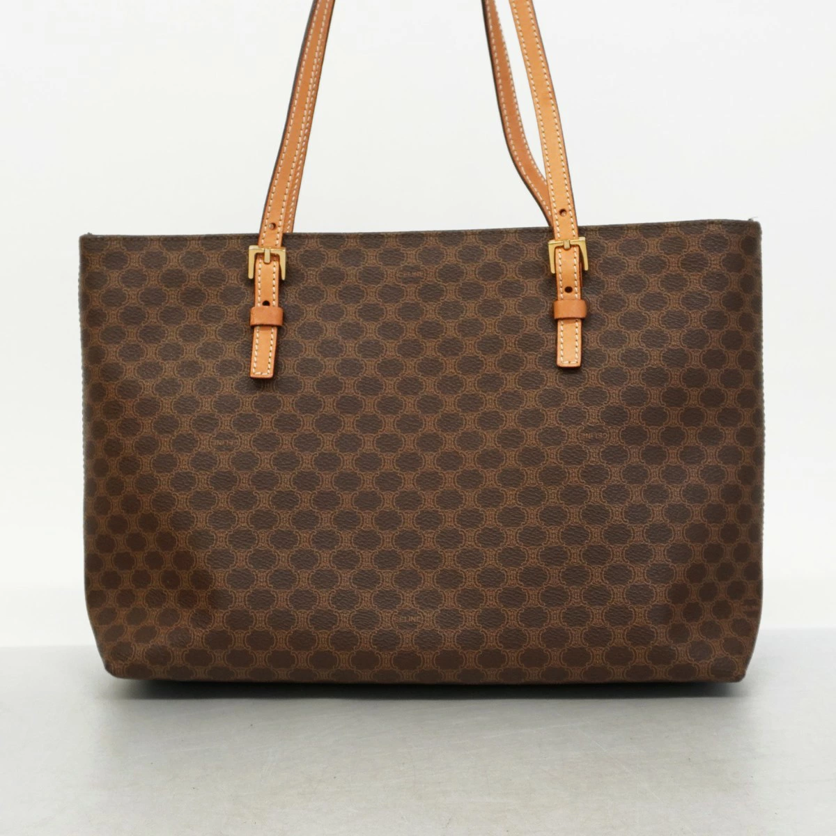 ★SALE【5oc1532】セリーヌ トートバッグ マカダム PVC ブラウン ゴールド金具【中古】レディース