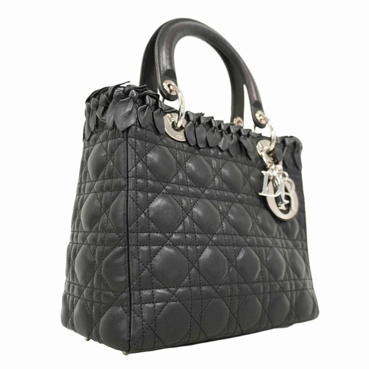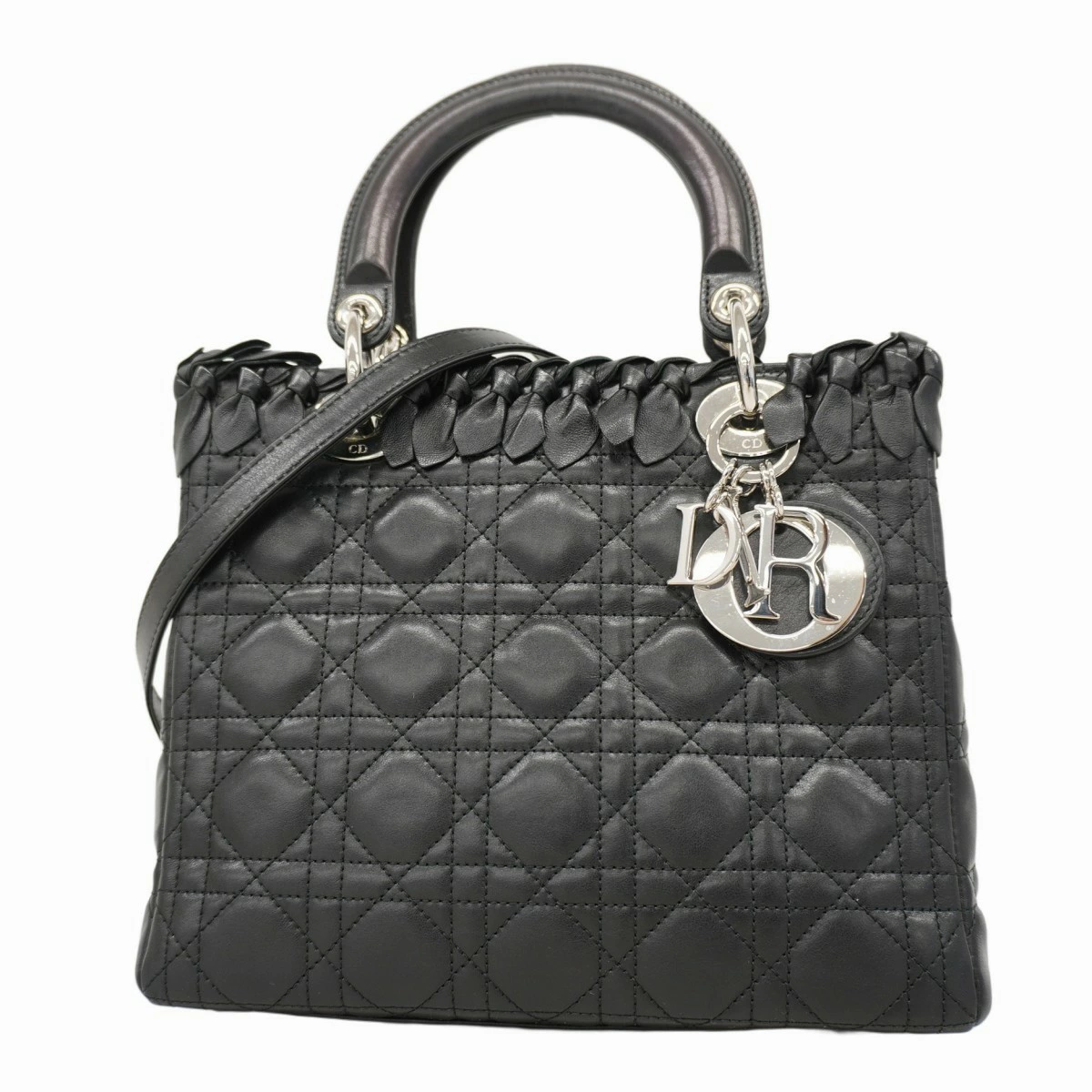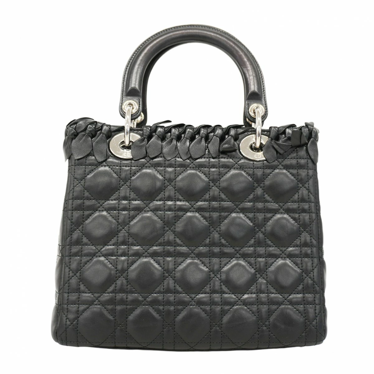 ★SALE【5oc1882-h】クリスチャンディオール ハンドバッグ カナージュ レディディオール レザー ブラック シルバー金具 2wayバッグ【中古】レディース