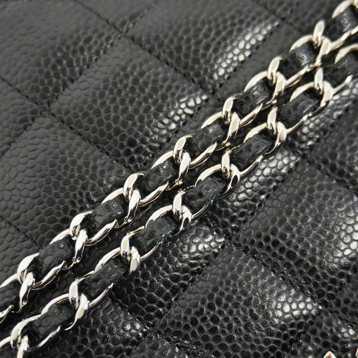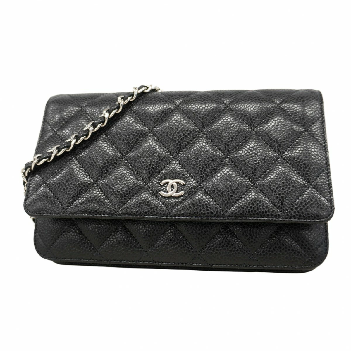 ★SALE【5oc1887-h】シャネル ショルダーウォレット マトラッセ チェーンショルダー キャビアスキン ブラック シルバー金具【中古】レディース