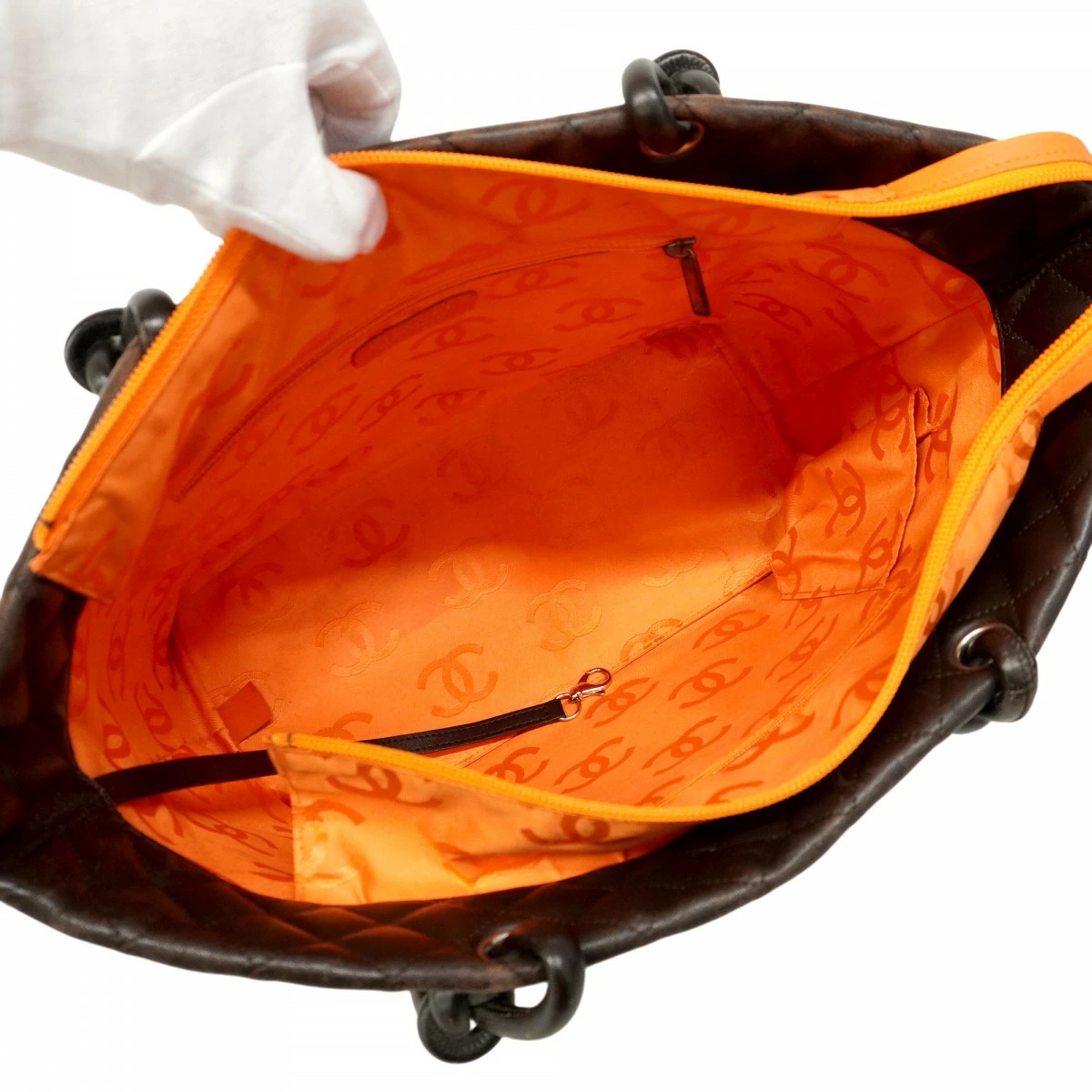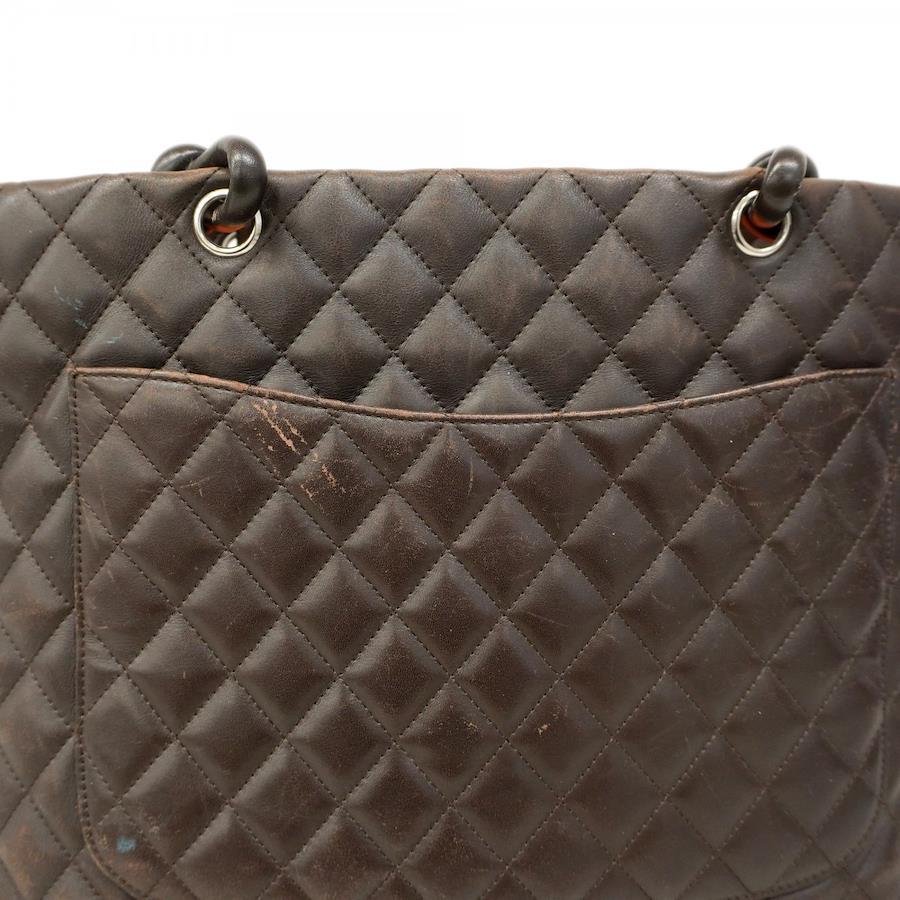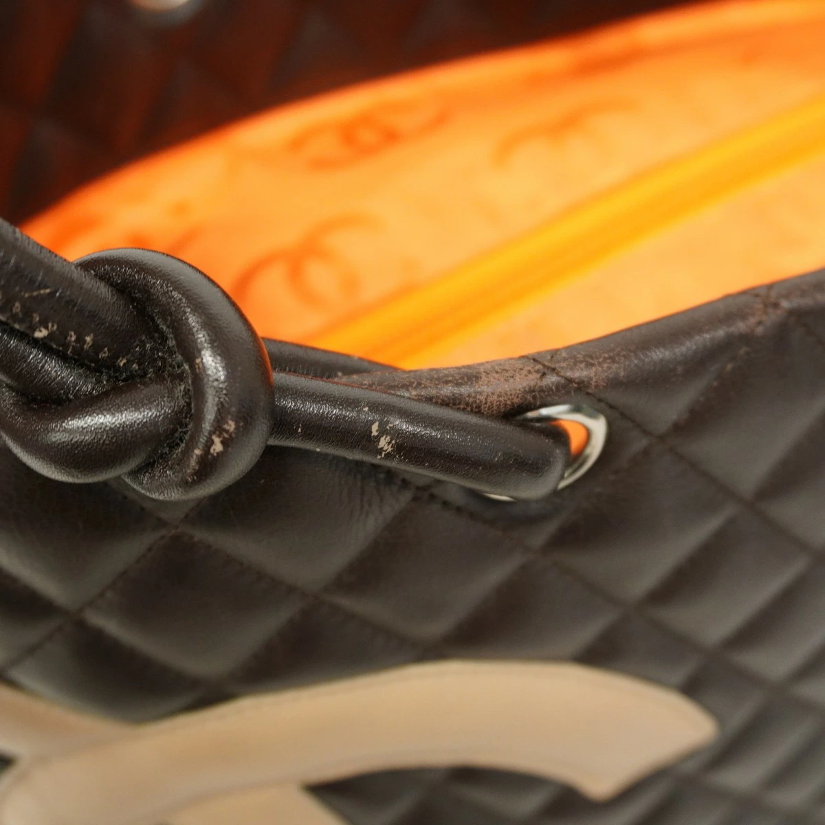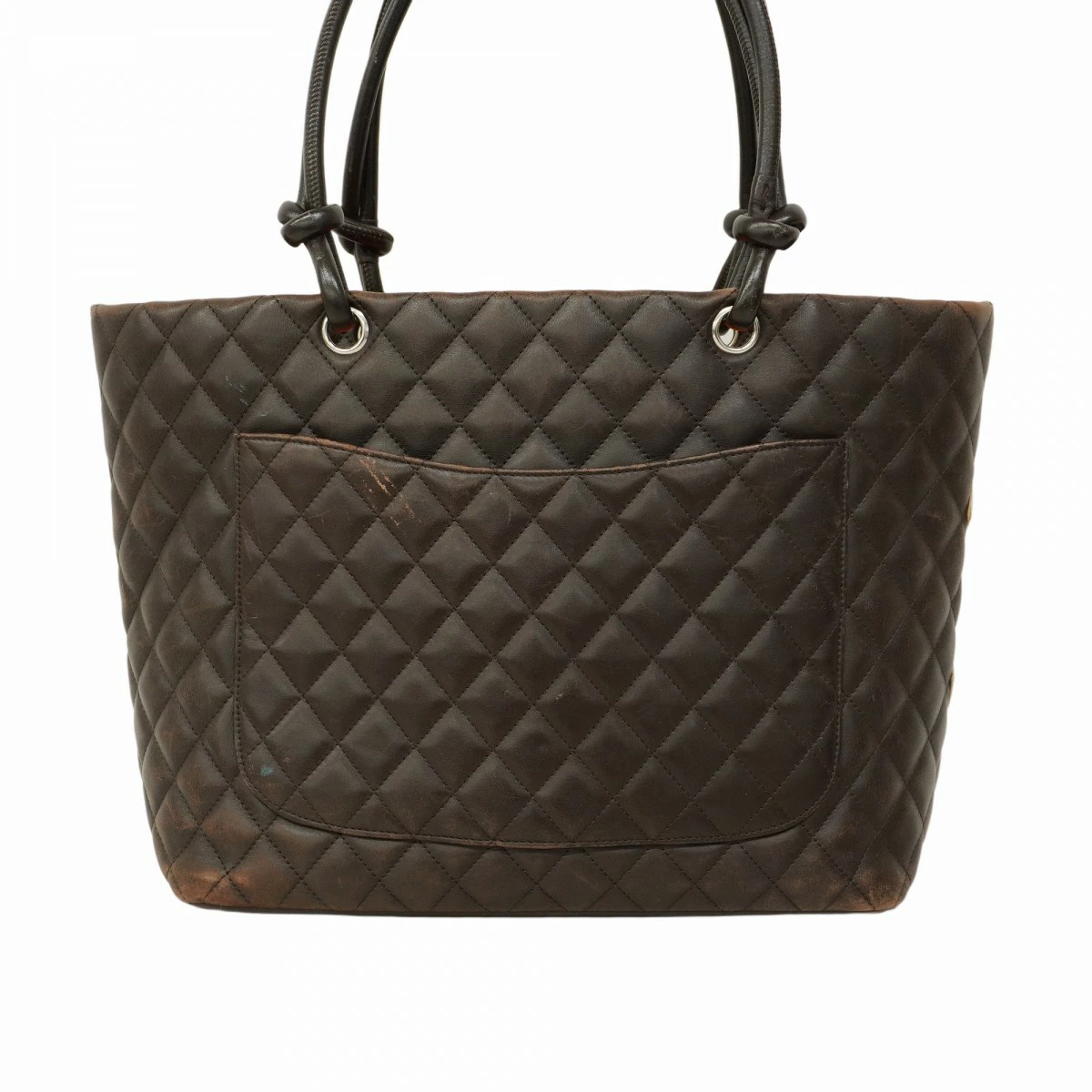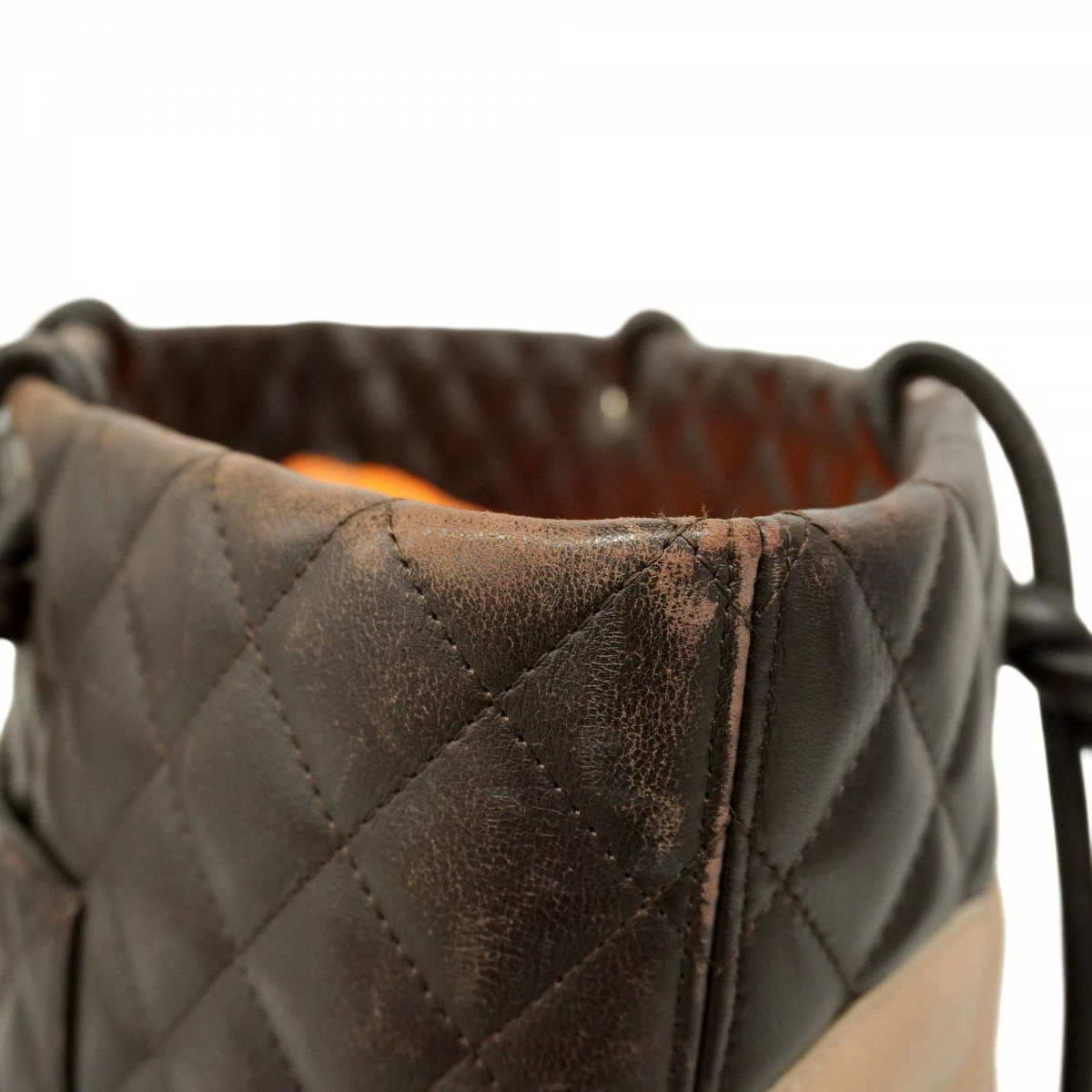 ★SALE【5oc2010-h】シャネル トートバッグ カンボン ラムスキン ブラウン ベージュ シルバー金具【中古】レディース