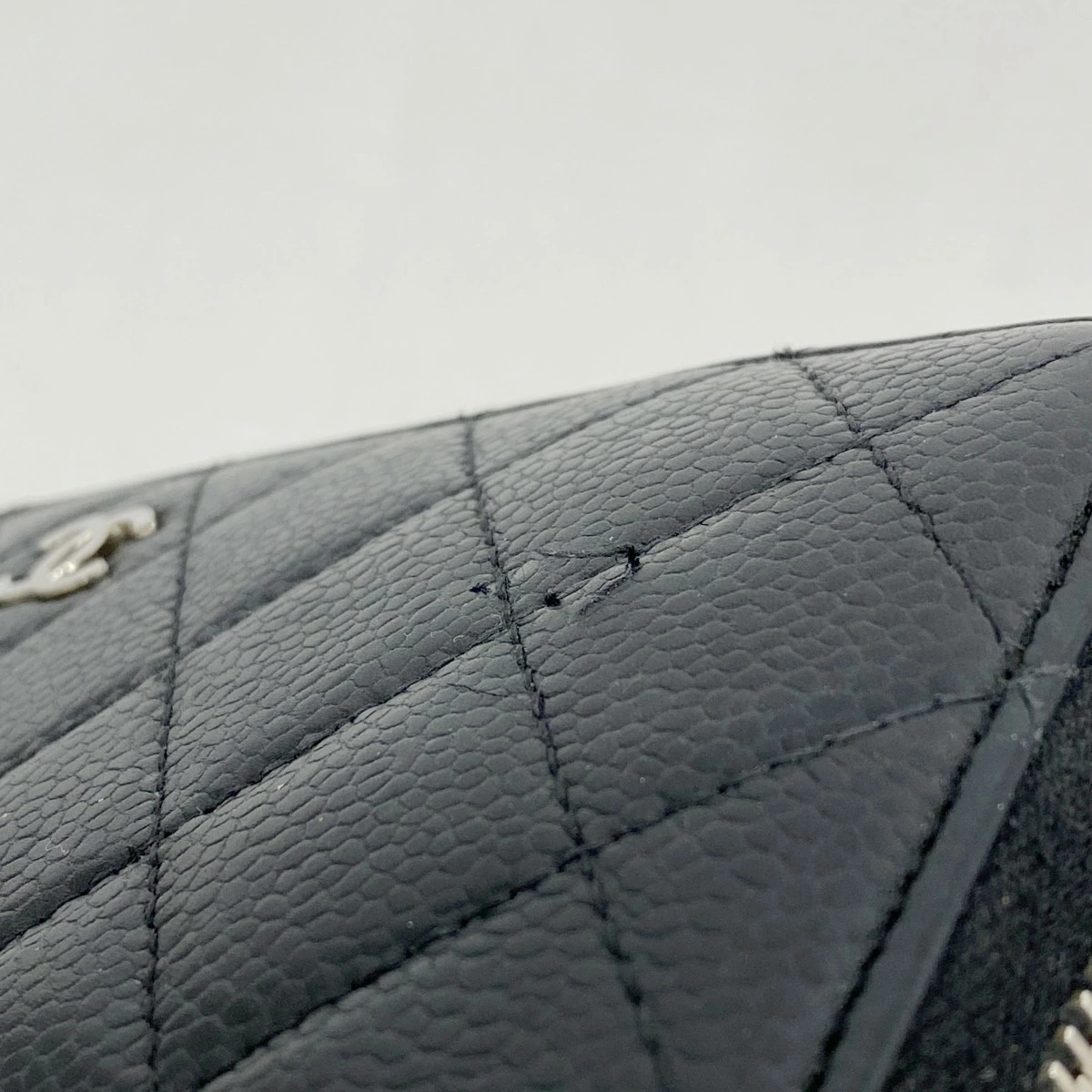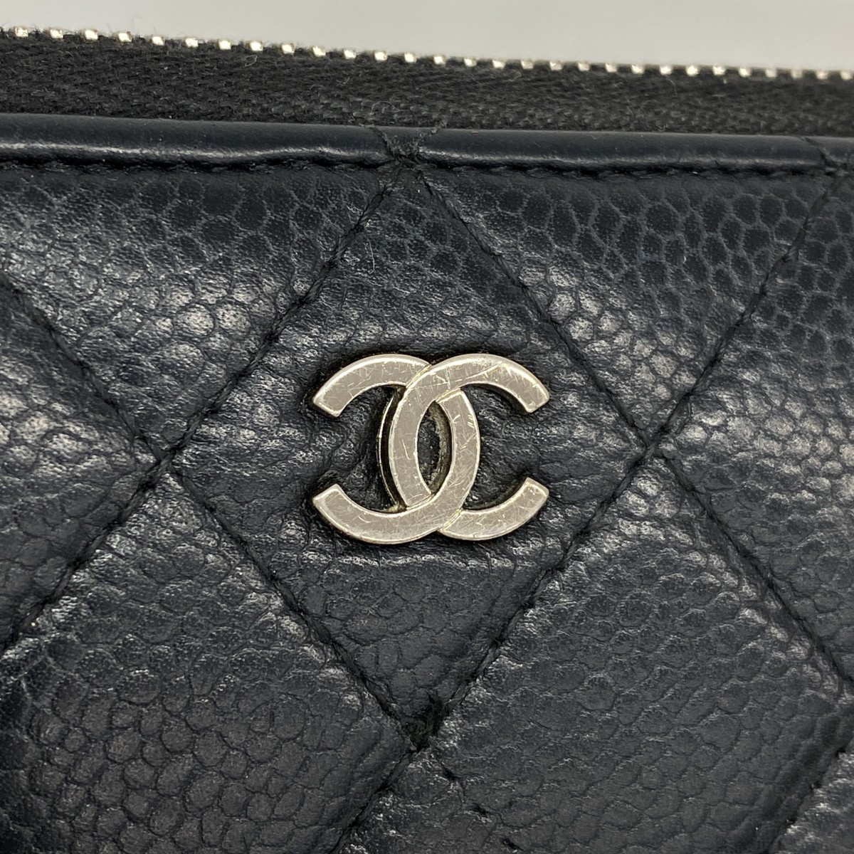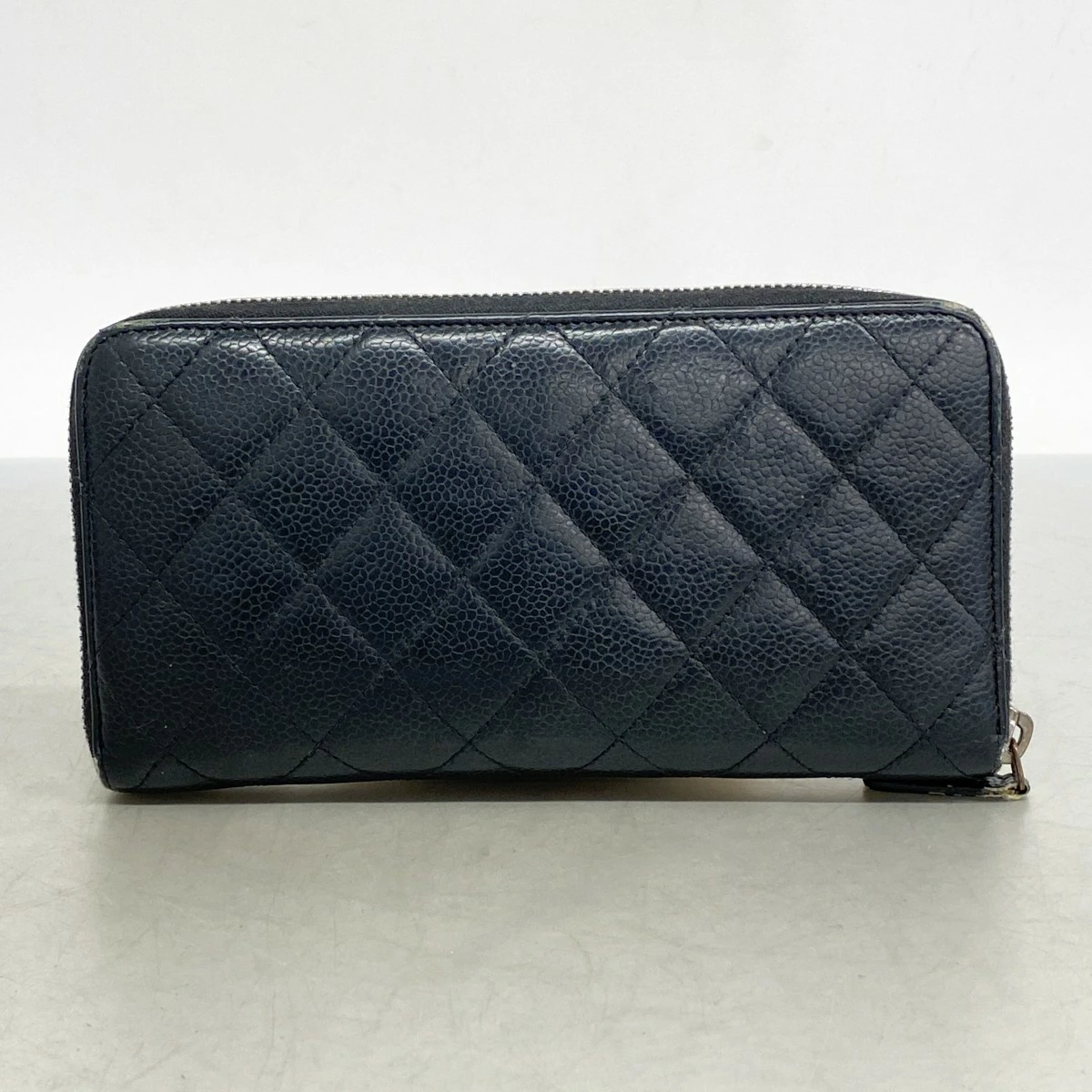★SALE【5oc2261-h】シャネル 長財布 マトラッセ キャビアスキン ブラック シルバー金具【中古】レディース