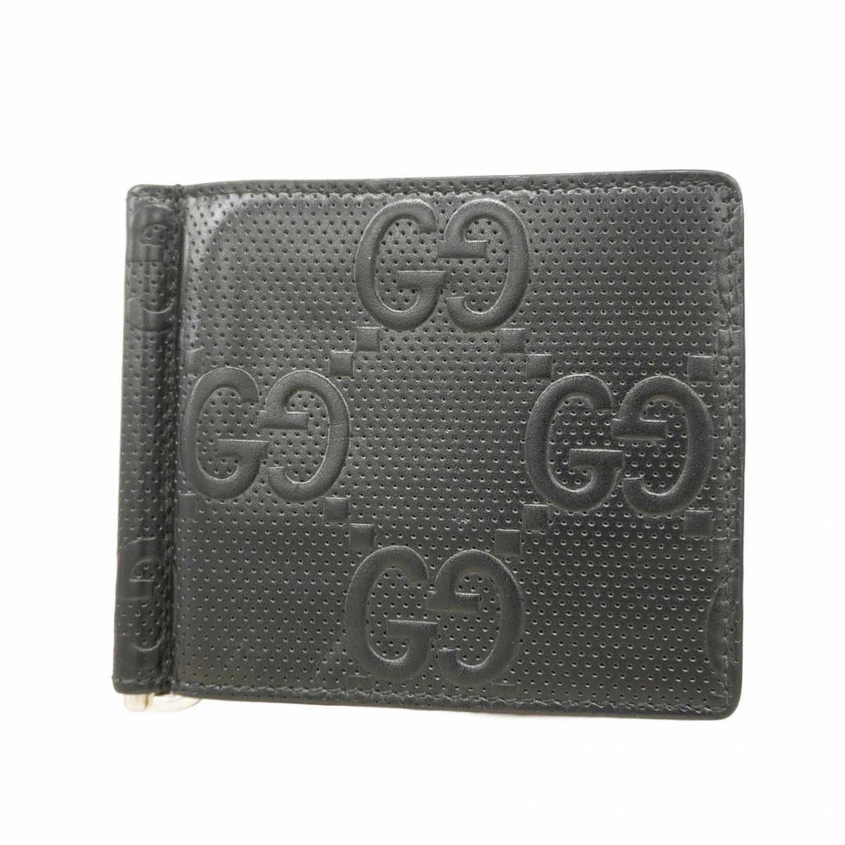★SALE【5oc2437】グッチ マネークリップ ジャンボGG 676656 レザー ブラック シルバー金具【中古】メンズ
