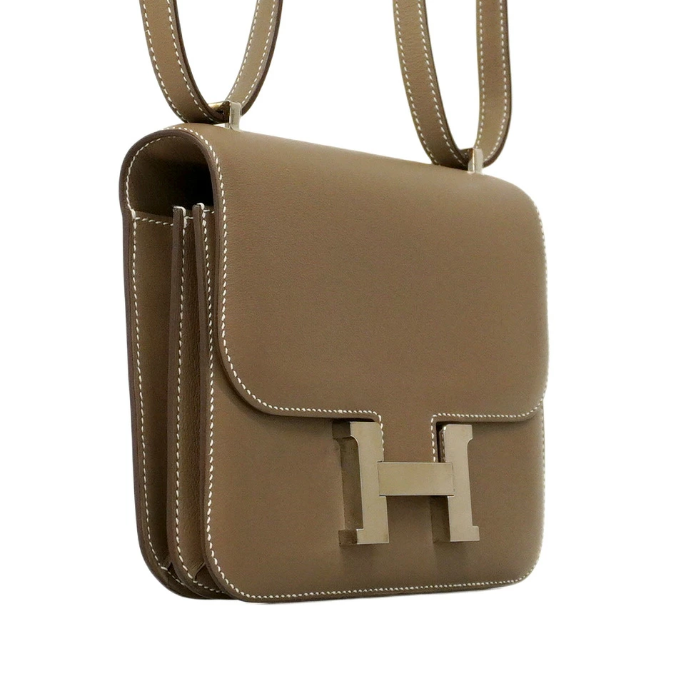 [5oc2528-h] Hermès Constance 18 Swift Etoupe Shoulder Bag, Silver Hardware, Y Stamp, Pre-owned, Women's