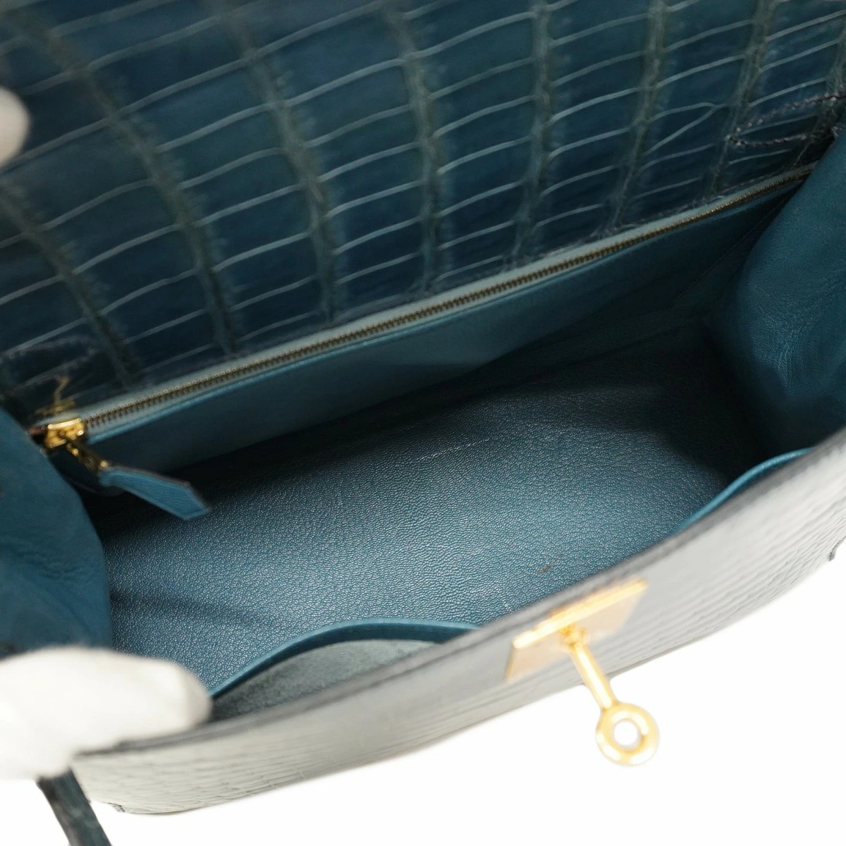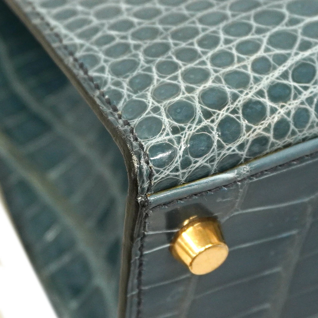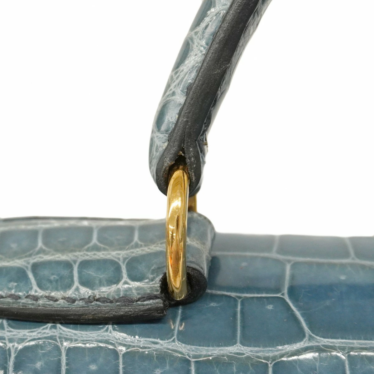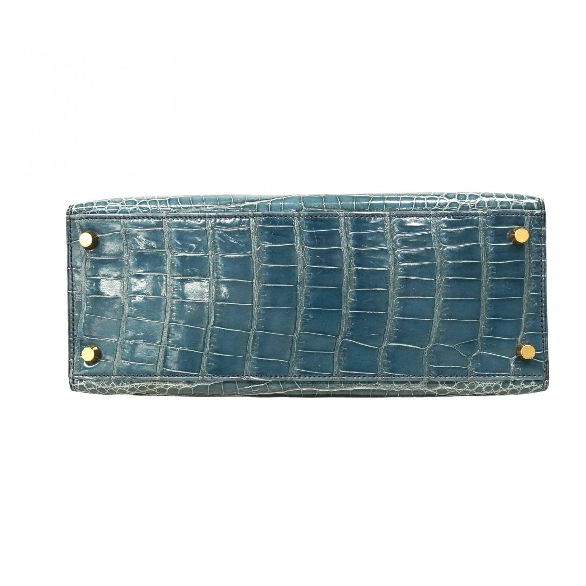 ★SALE【5od1116-2-h-g】エルメス ハンドバッグ ケリー28 ポロサス ブルー ゴールド金具 □A刻印 2wayバッグ【中古】レディース