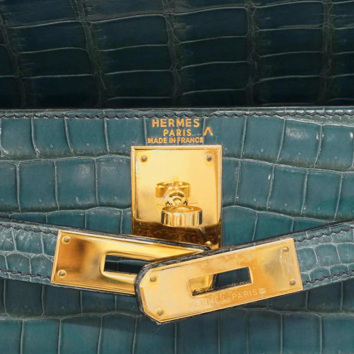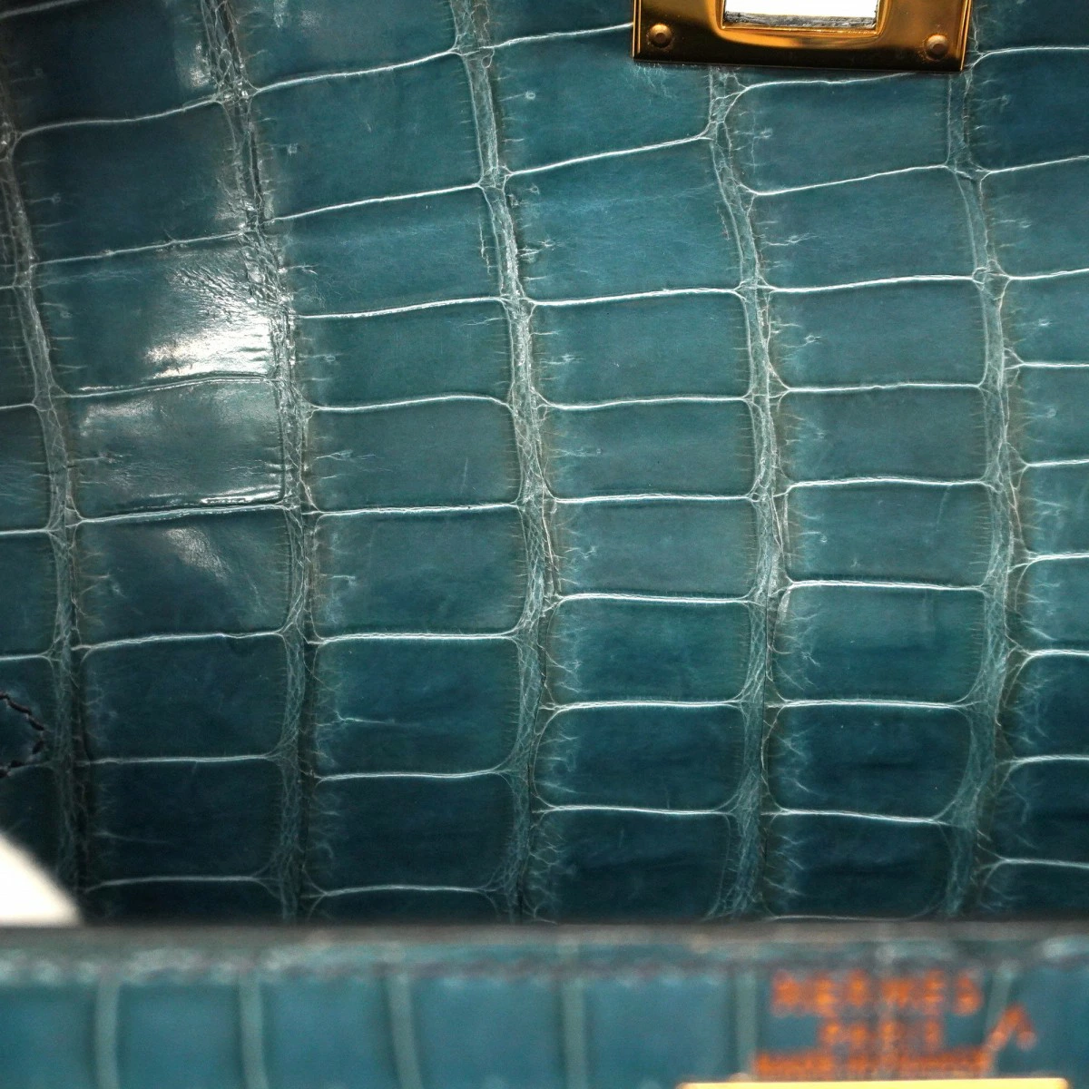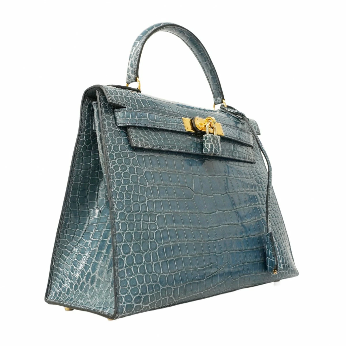 ★SALE【5od1116-2-h-g】エルメス ハンドバッグ ケリー28 ポロサス ブルー ゴールド金具 □A刻印 2wayバッグ【中古】レディース
