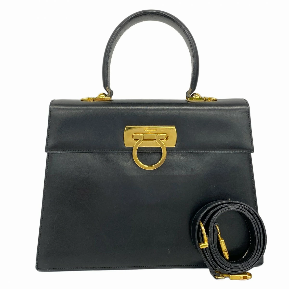★SALE【5od3644】サルヴァトーレフェラガモ ハンドバッグ ガンチーニ レザー ブラック ゴールド金具【中古】レディース