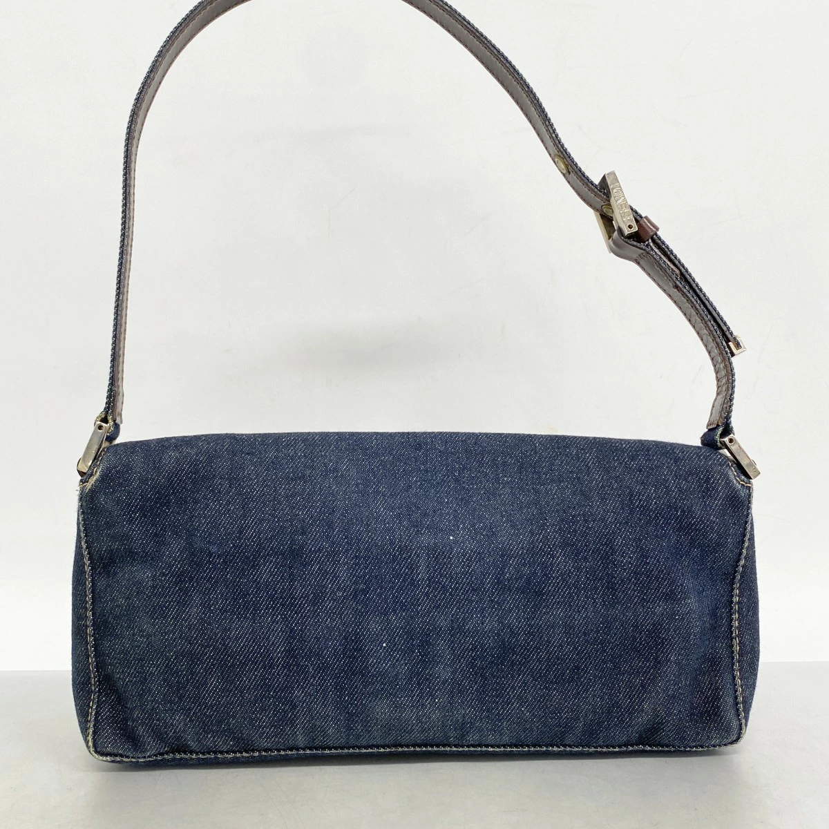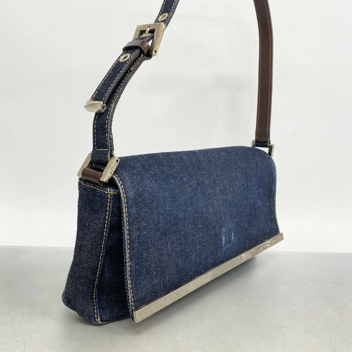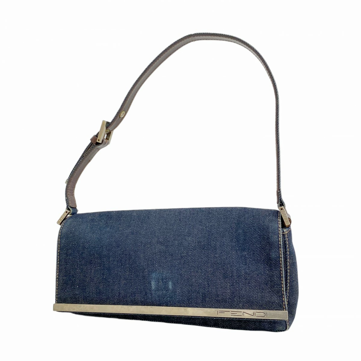★SALE【5od3695】フェンディ ショルダーバッグ デニム ネイビー シルバー金具【中古】レディース