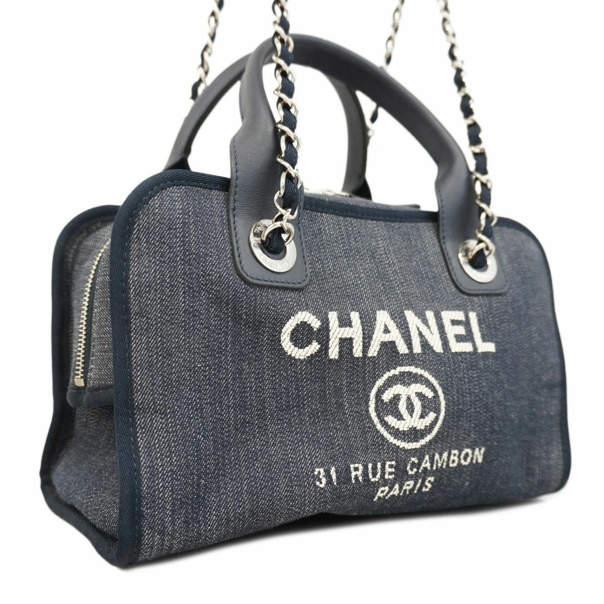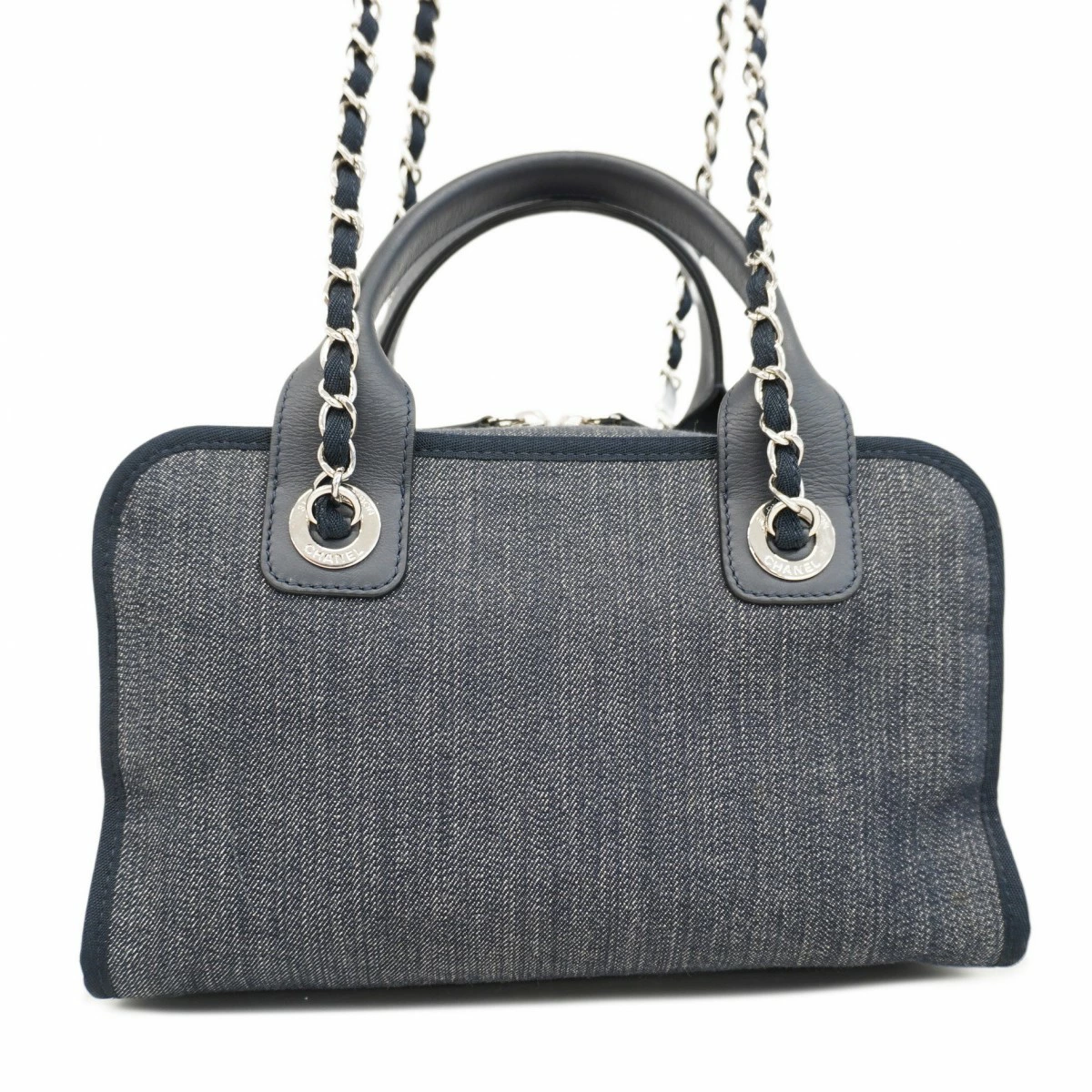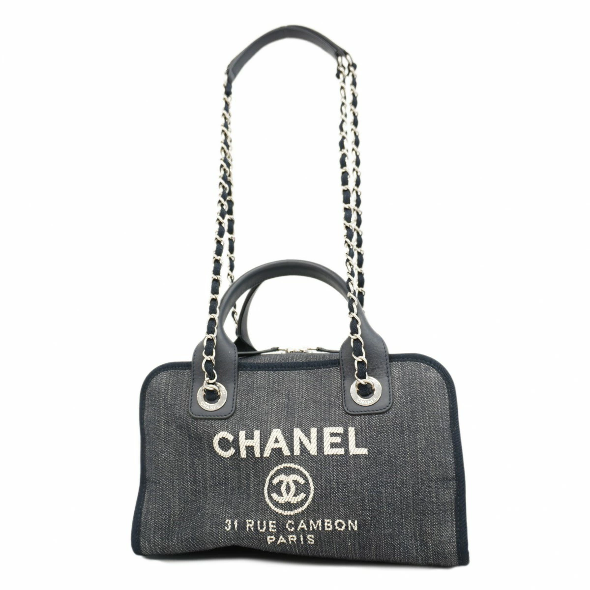 ★SALE【5pa0782-h】シャネル ハンドバッグ ドーヴィル チェーンショルダー デニム ネイビー シルバー金具 2wayバッグ【中古】レディース